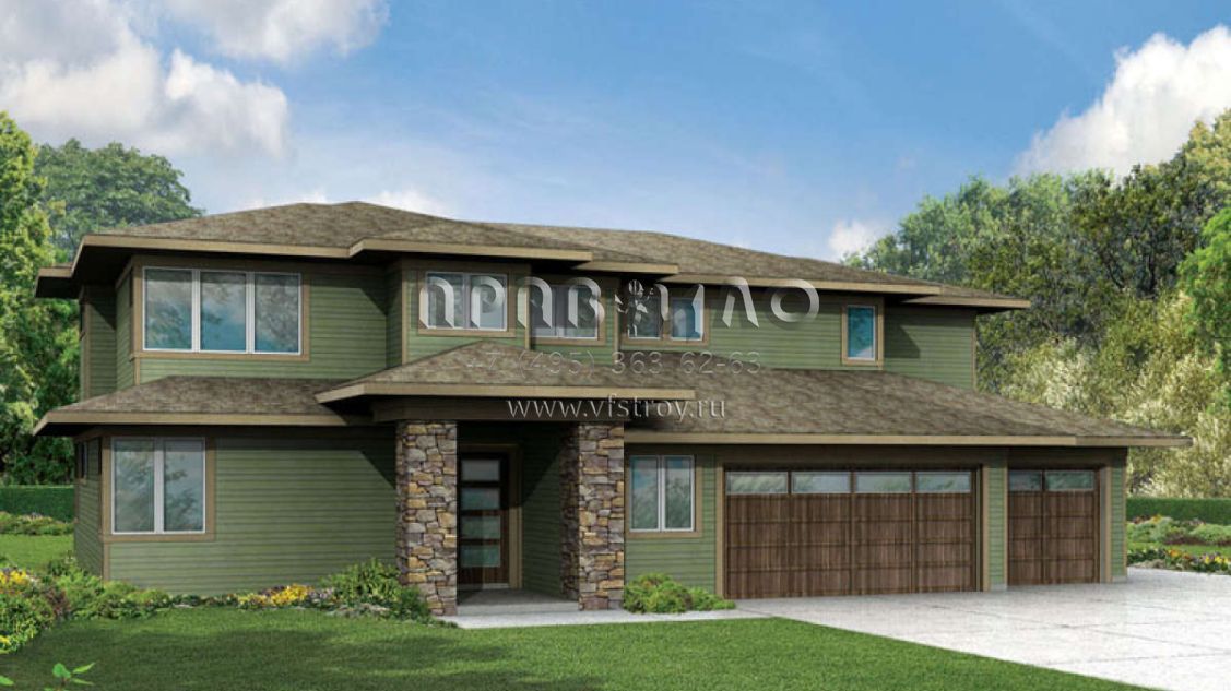 Проект двухэтажного дома с гаражом на три машины в американском стиле S5-289 (035-00657)