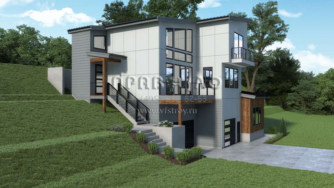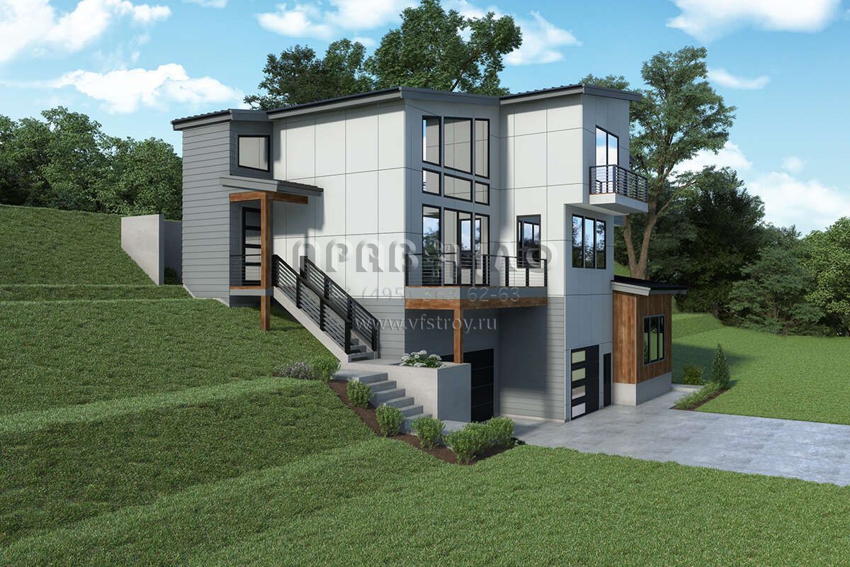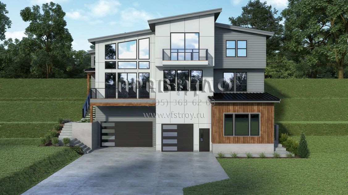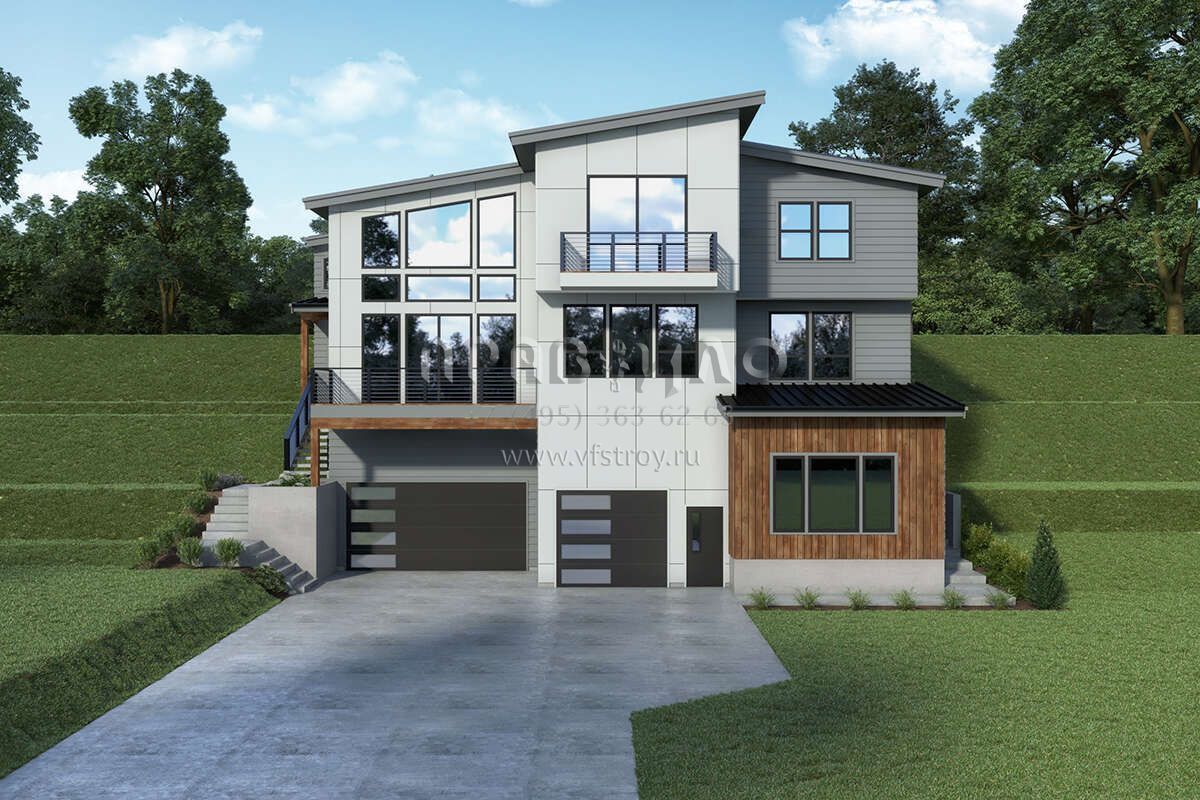 Проект двухэтажного дома с гаражом на три и более машин в современном стиле S5-289 (2464-00118)