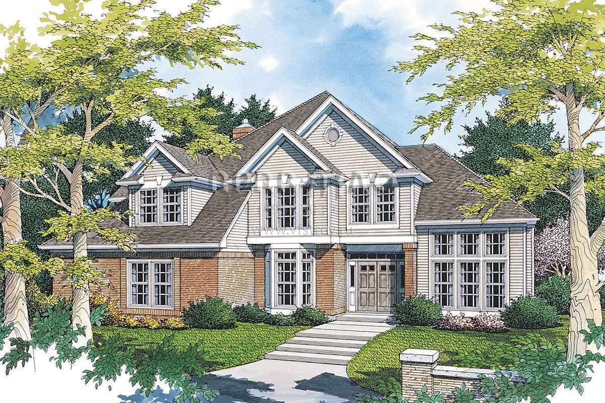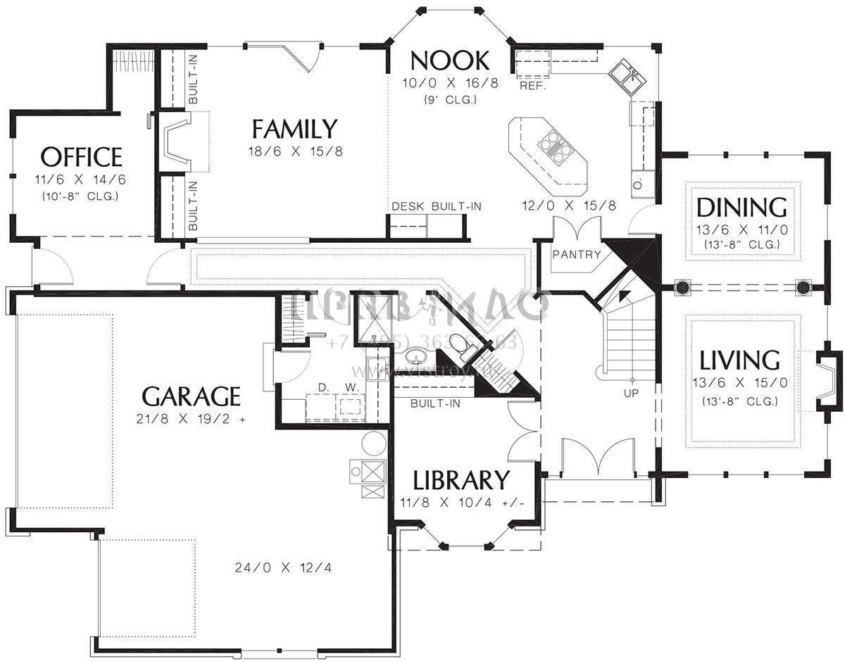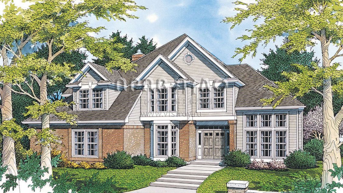 Проект двухэтажного дома с гаражом на три и более машин в стиле Ранчо S5-289 (2559-00488)