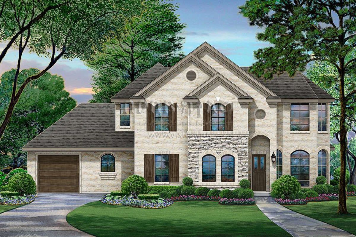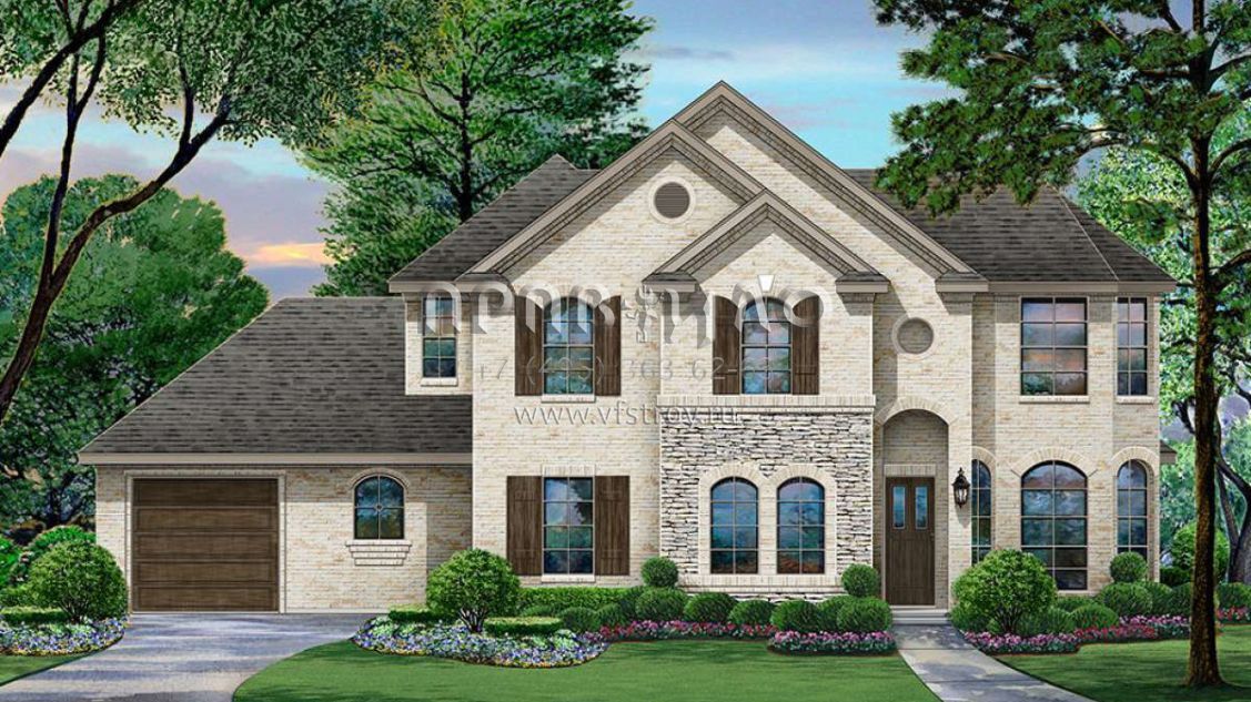Проект двухэтажного дома с гаражом на три и более машин в английском стиле S5-289 (5445-00340)