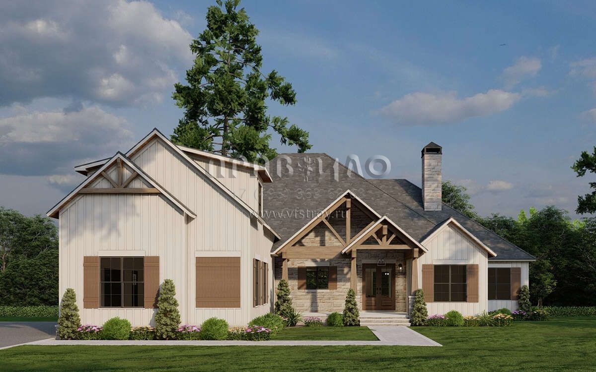 Проект одноэтажного дома с гаражом на две машины в американском стиле S5-289 (8318-00373)