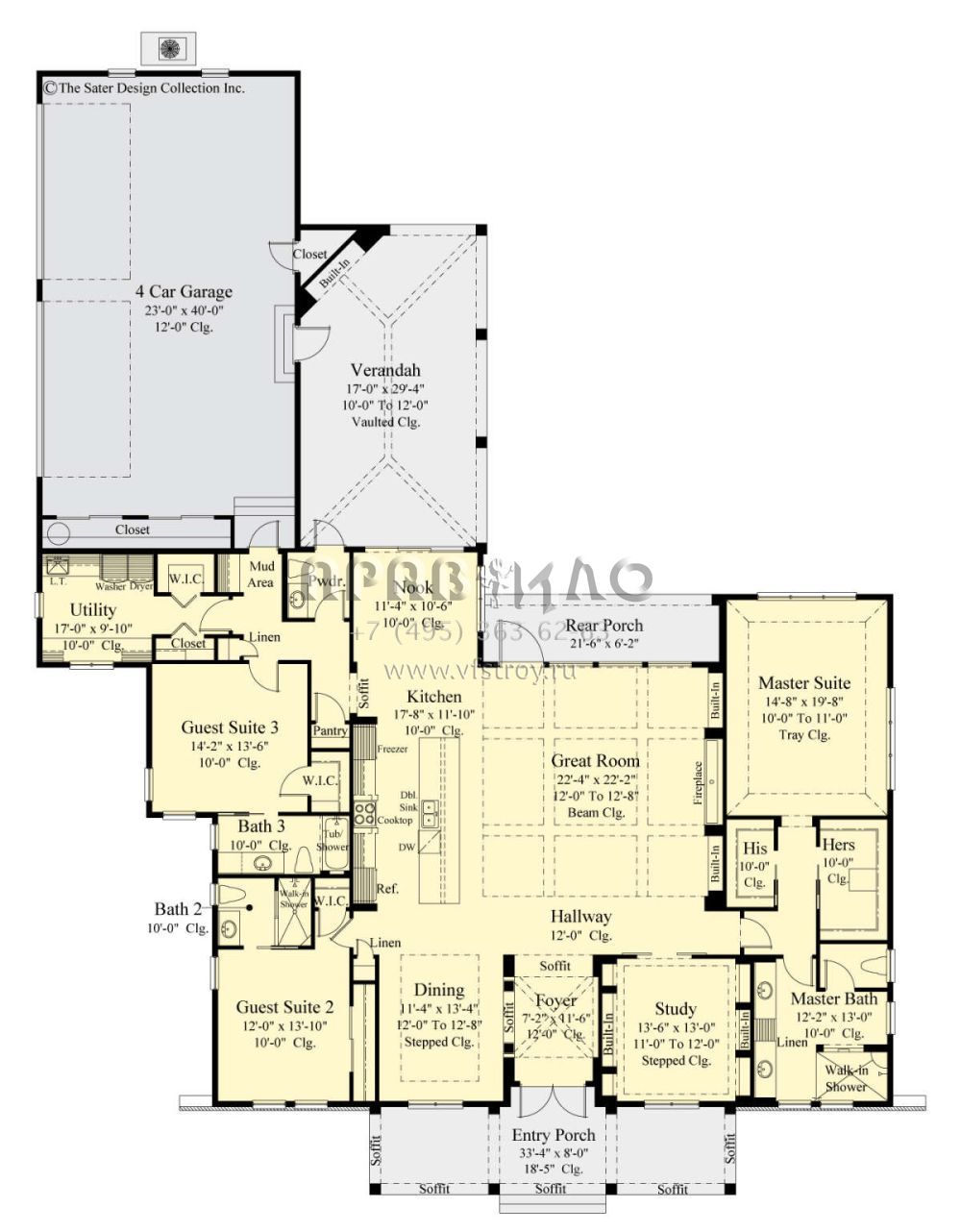 Поскольку этот проект разрабатывался иностранными архитекторами, для строительства дома требуется переработка проекта под действующие в России нормы. Данные визуализации проекта представлены для ознакомления с концепцией проекта. Проект разработан американским архитектурным бюро и представлен America's Best House Plans.