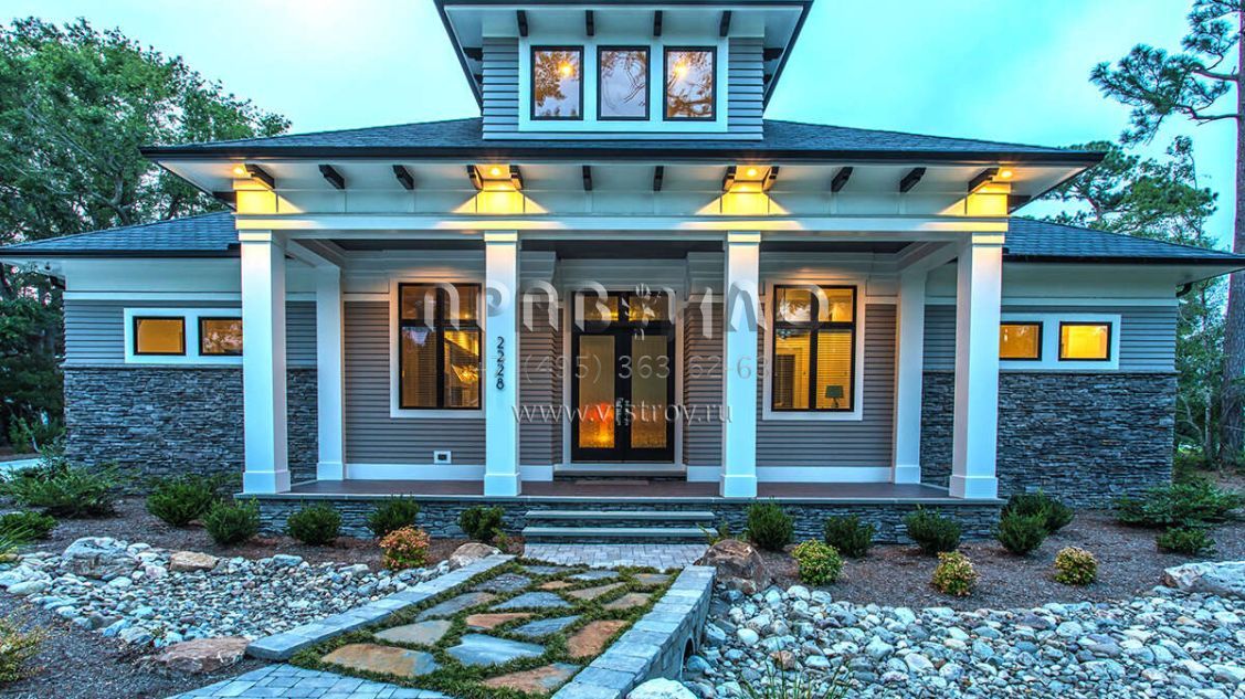 Большая площадь участка позволяет выбрать одноэтажный проект дома, особенно если в семье есть пожилые люди, инвалиды или маленькие дети.