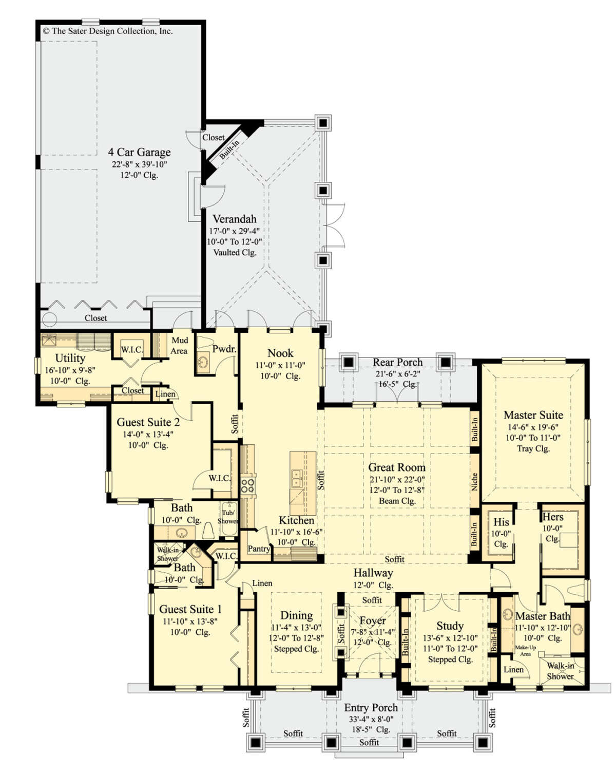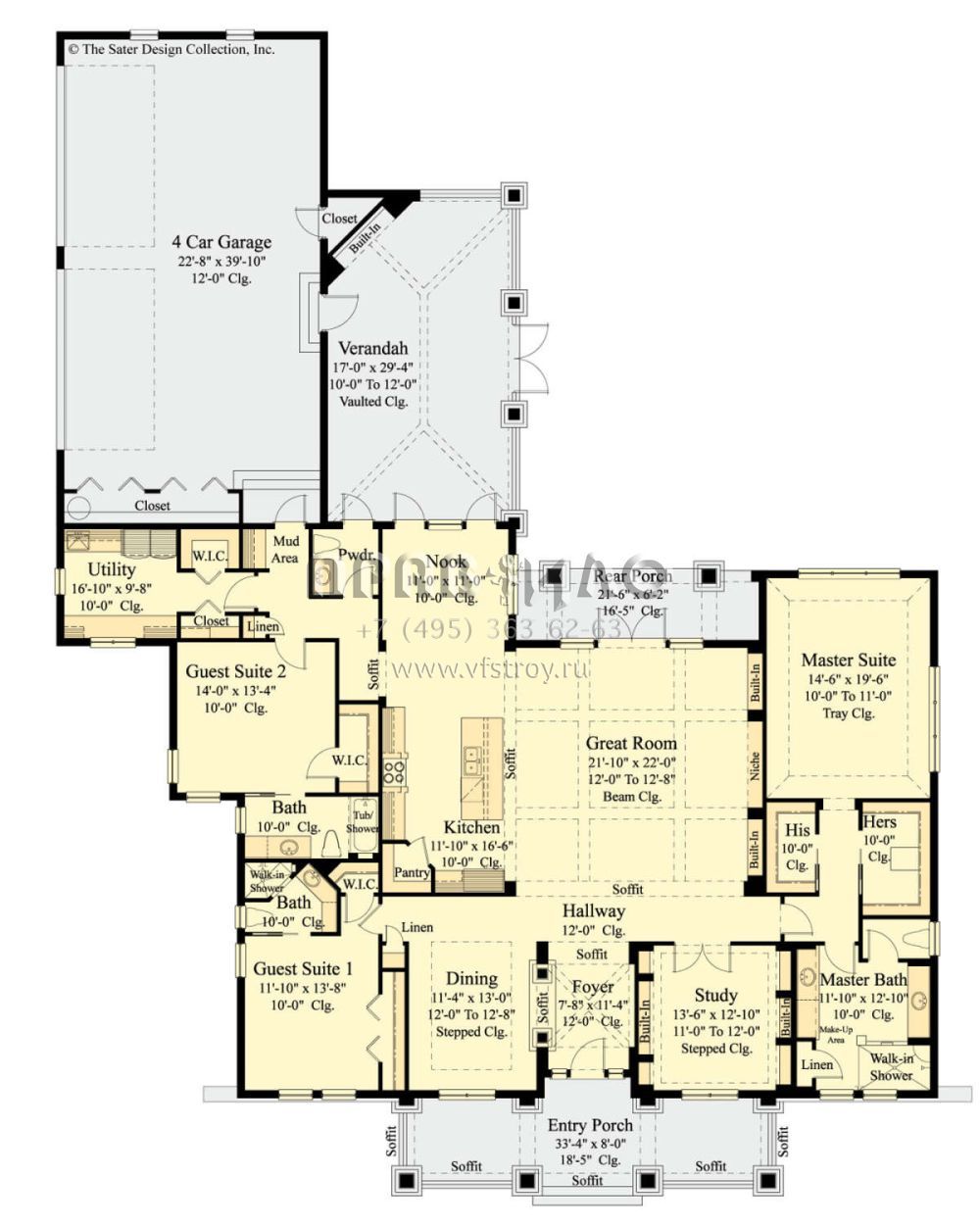 Проект одноэтажного дома с гаражом на три и более машин в американском стиле S5-289 (8436-00035)