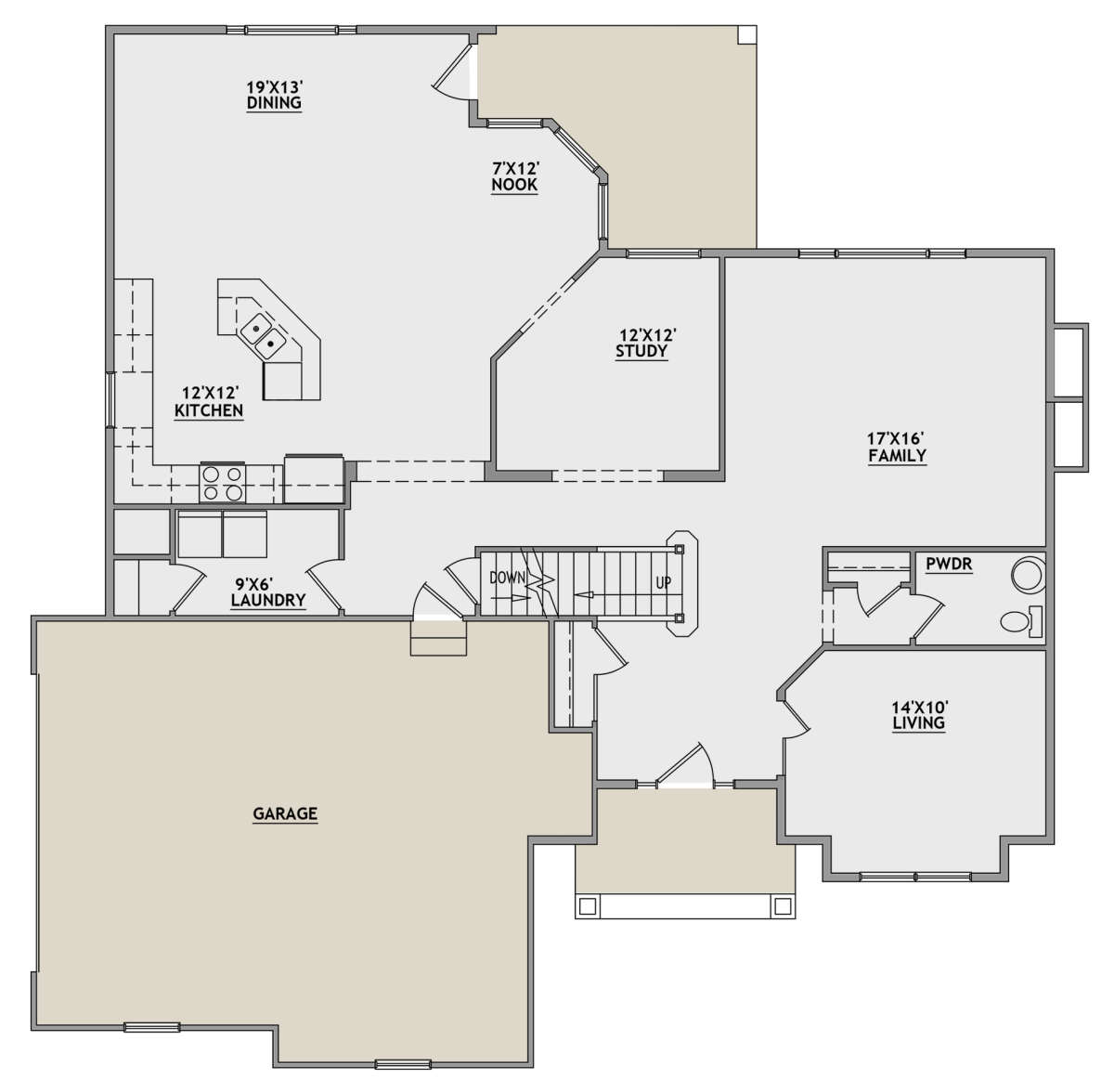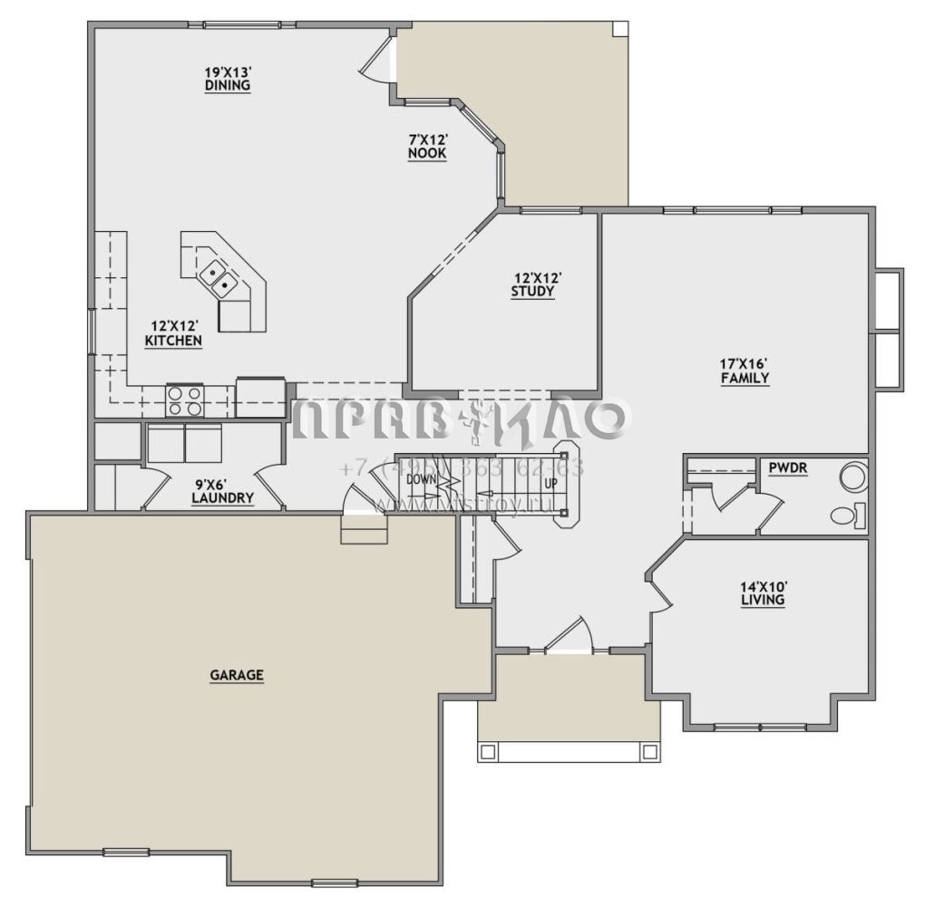 Проект двухэтажного дома с гаражом на две машины в стиле Ранчо S5-289 (8768-00098)