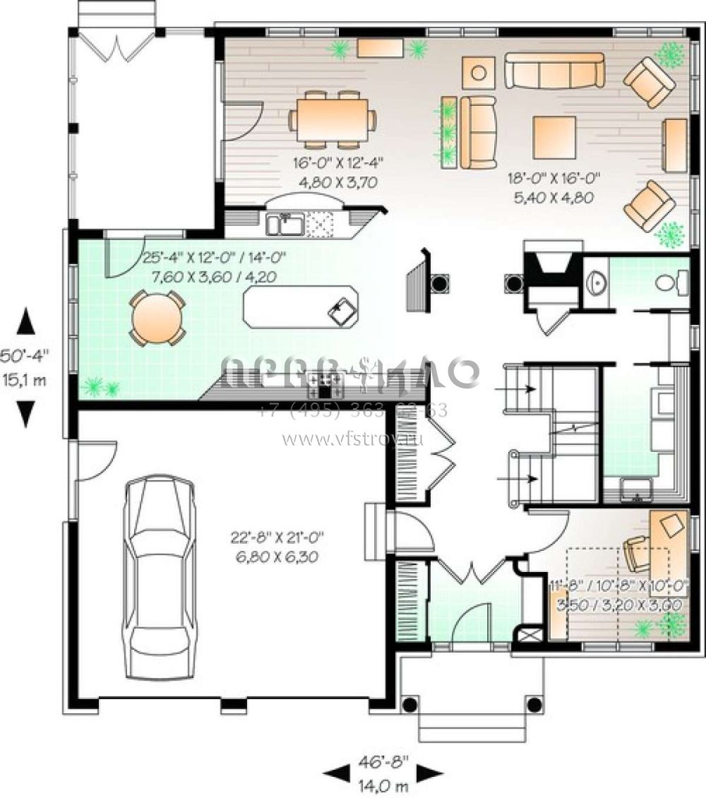 S5-290 (034-00413) Это иностранный проект, для которого требуется адаптация под нормы, действующие в Российской Федерации. Вы видите проект дома в стиле Ранчо. В этом доме сочетаются черты сельской постройки и аскетичность лофта. Внутри жильцы смогут проводить время с максимальным комфортом. Обратим внимание, что сейчас на планировках все размеры представлены в футах. Для перевода в метры вам необходимо значение в футах умножить на 0,3048.