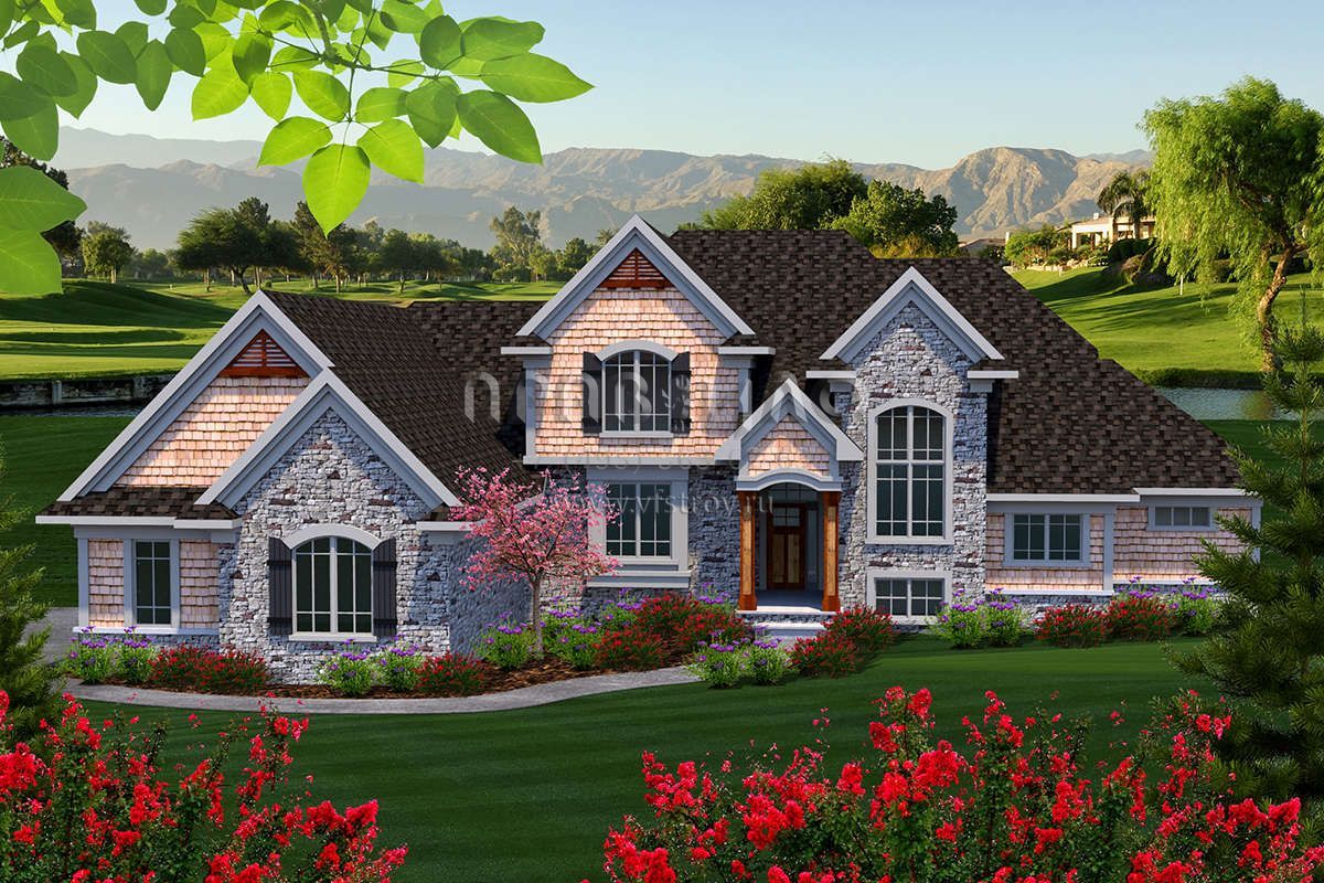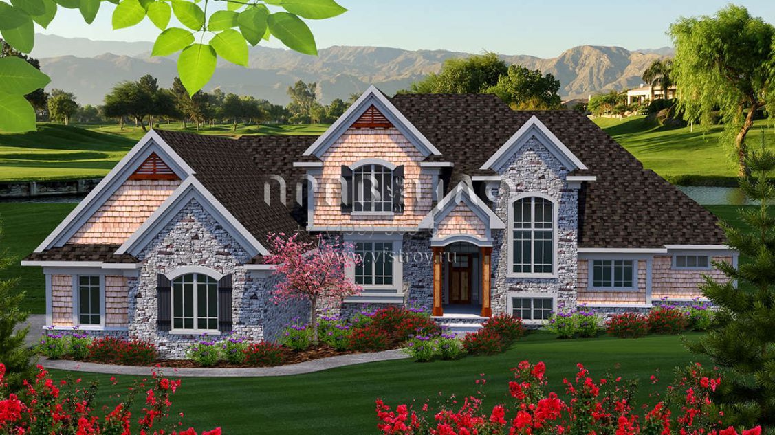 Проект двухэтажного дома с гаражом на три и более машин в английском стиле S5-290 (1020-00158)