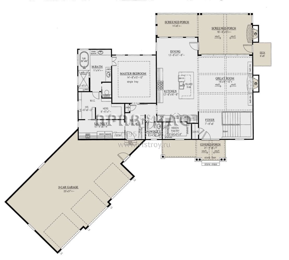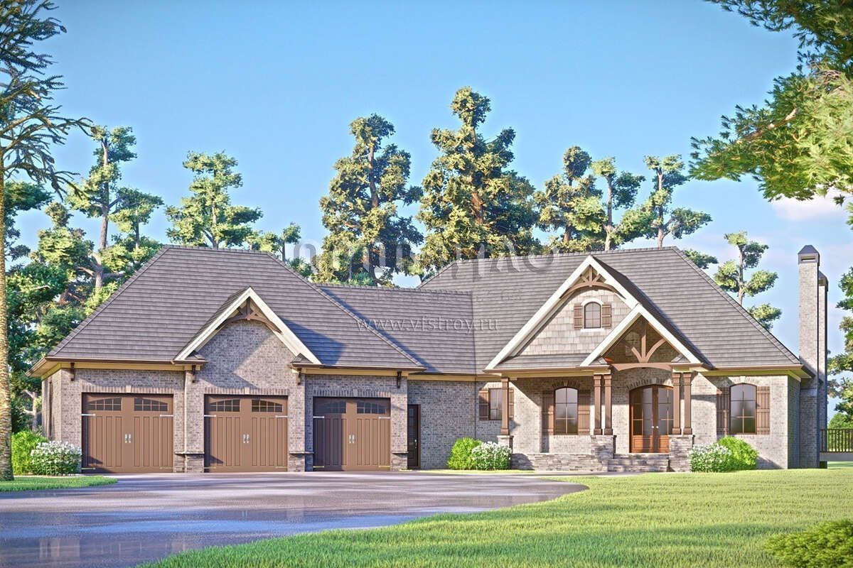 Проект одноэтажного дома с гаражом на три и более машин в американском стиле S5-290 (286-00113)