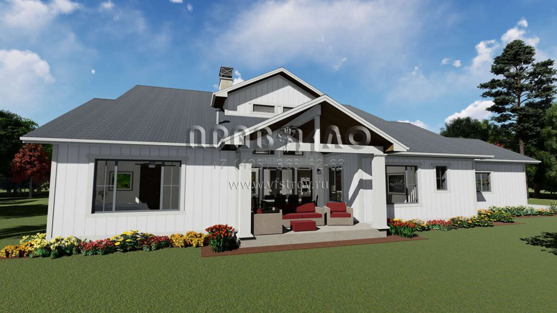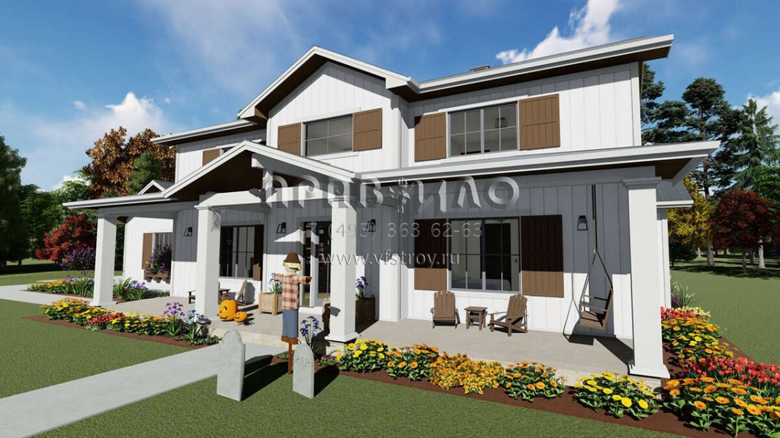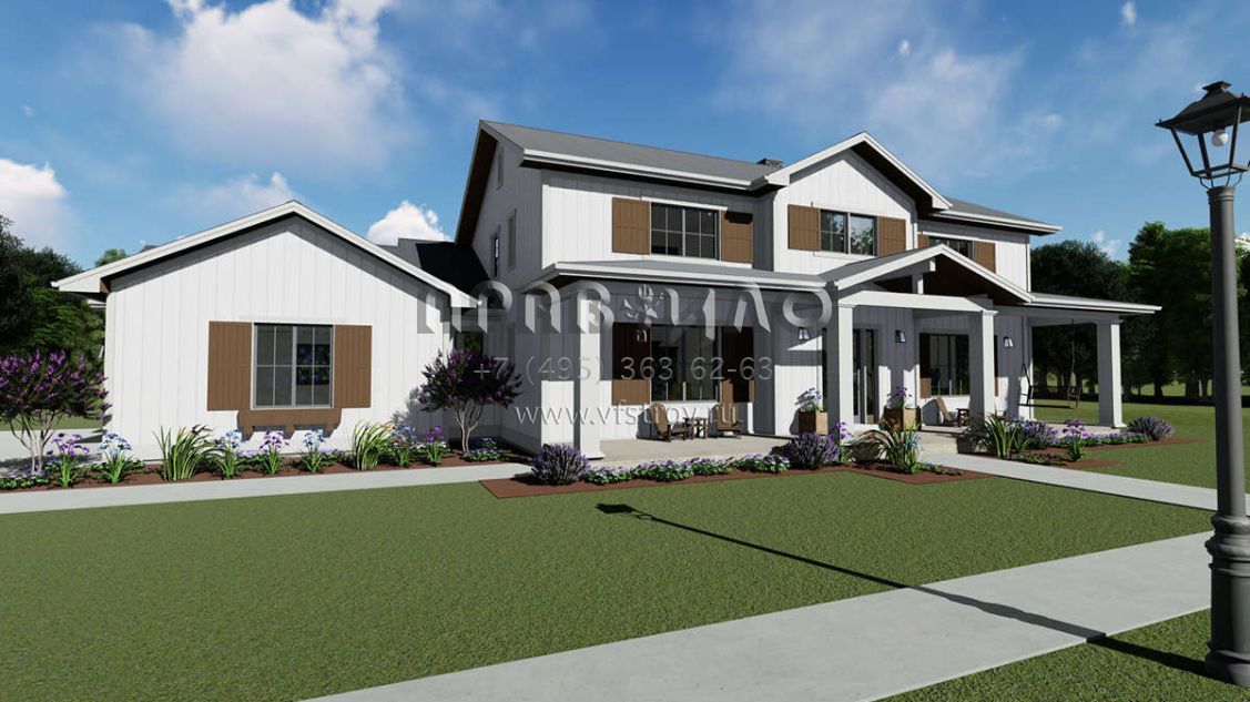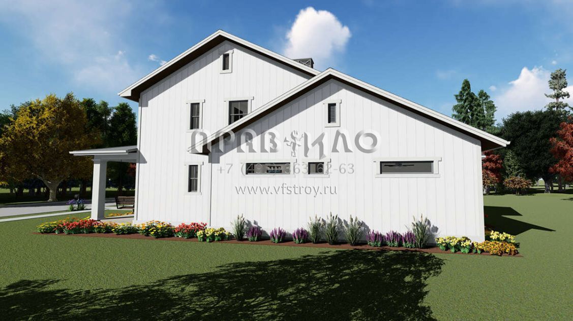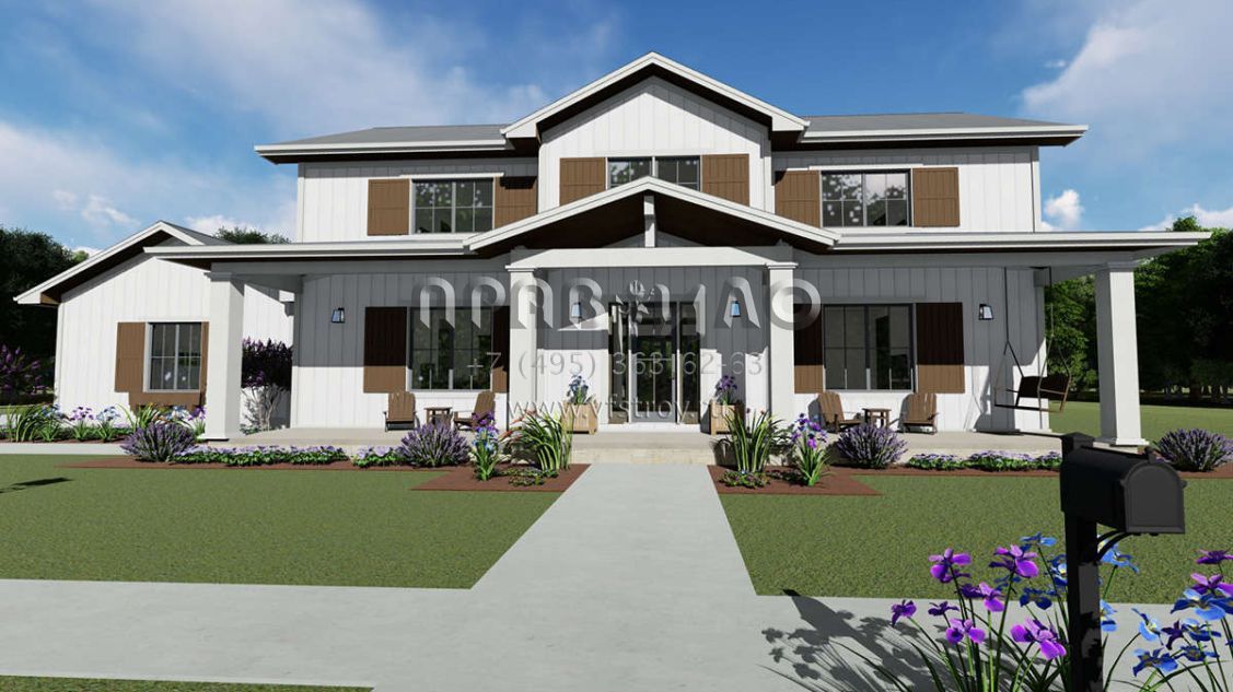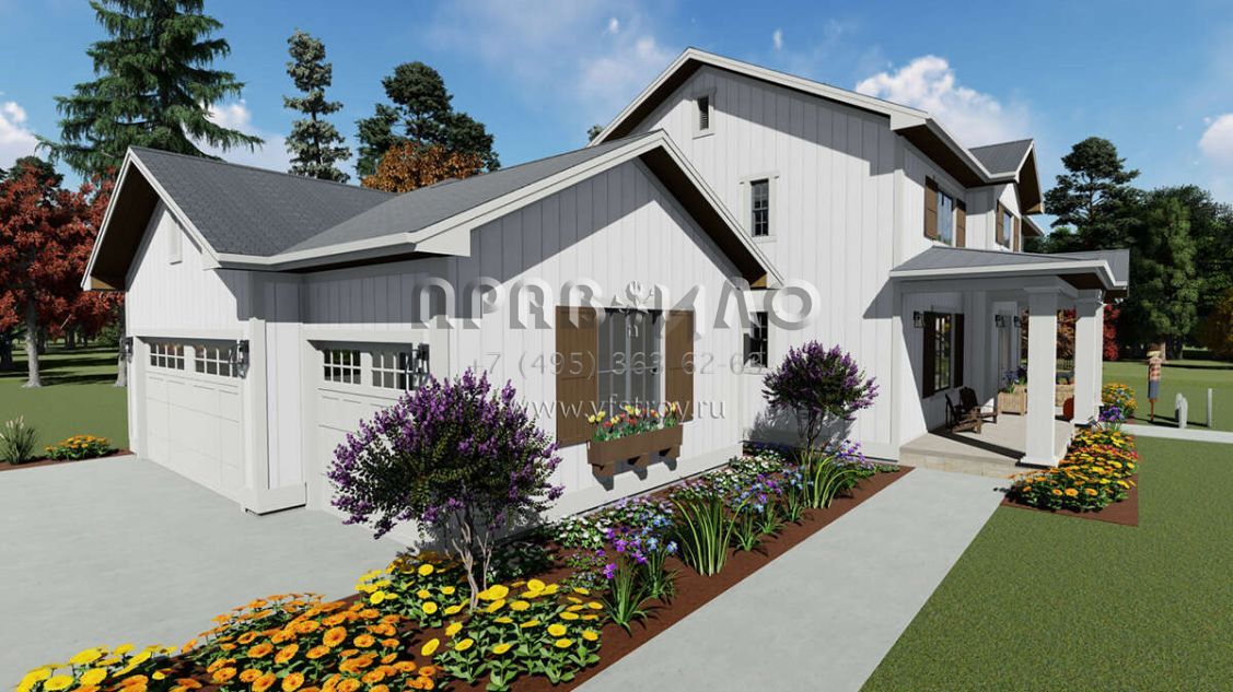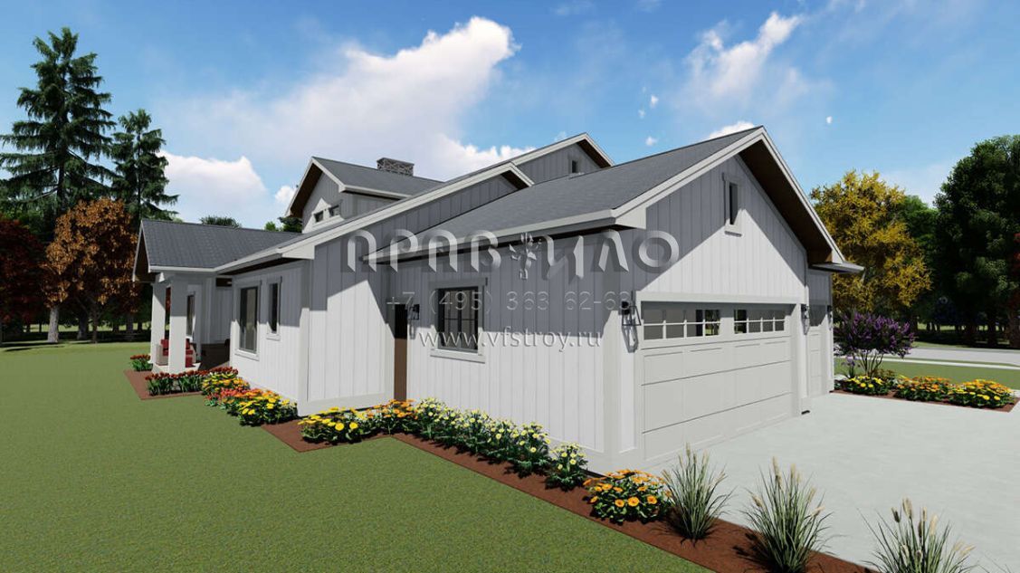Проект двухэтажного дома с гаражом на три и более машин в стиле Ранчо S5-290 (425-00030)