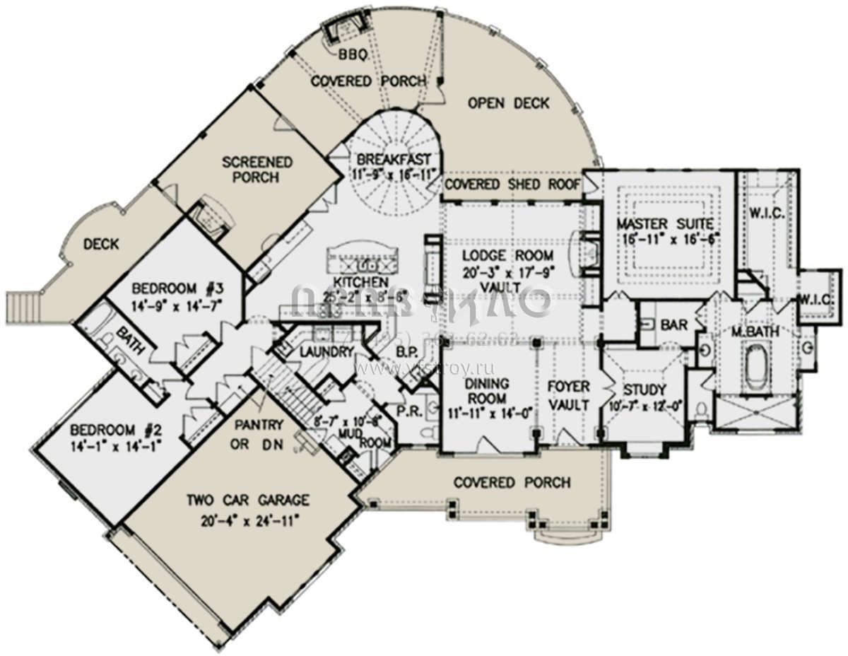 Проект двухэтажного дома с гаражом на две машины в стиле Ранчо S5-290 (699-00011)
