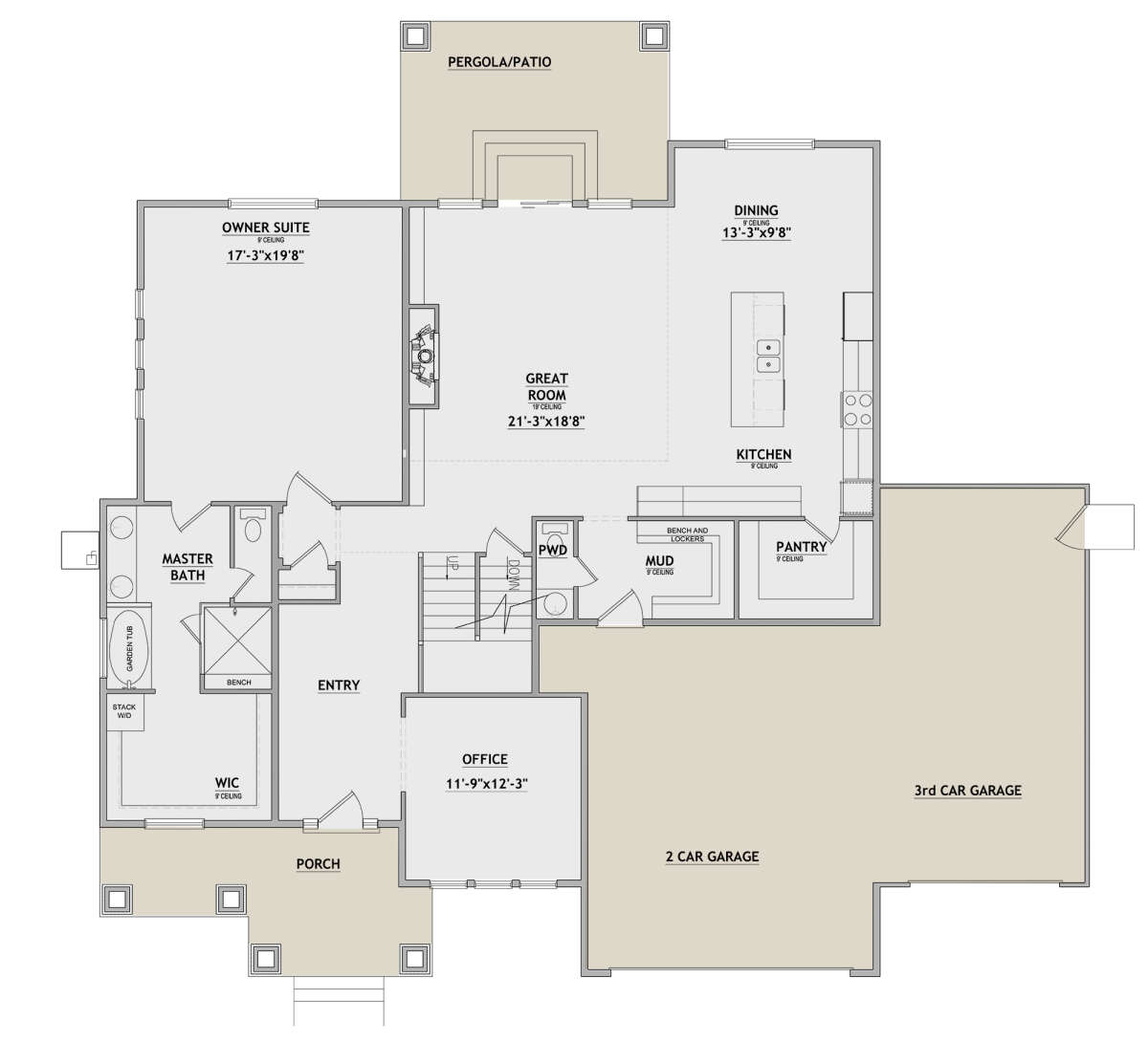 S5-290 (8768-00021) Это иностранный проект, для которого требуется адаптация под нормы, действующие в Российской Федерации. Вы видите проект дома в стиле Ранчо. В этом доме сочетаются черты сельской постройки и аскетичность лофта. Внутри жильцы смогут проводить время с максимальным комфортом. Обратим внимание, что сейчас на планировках все размеры представлены в футах. Для перевода в метры вам необходимо значение в футах умножить на 0,3048.