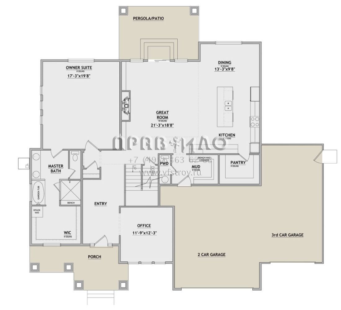 Поскольку этот проект разрабатывался иностранными архитекторами, для строительства дома требуется переработка проекта под действующие в России нормы. Данные визуализации проекта представлены для ознакомления с концепцией проекта. Проект разработан американским архитектурным бюро и представлен America's Best House Plans.