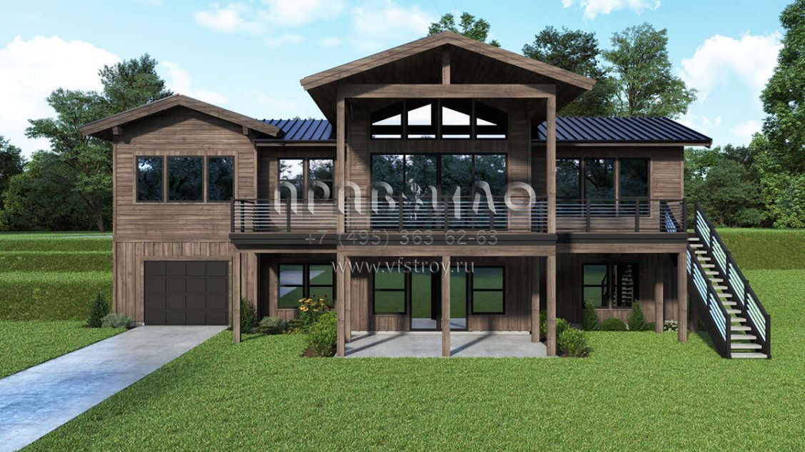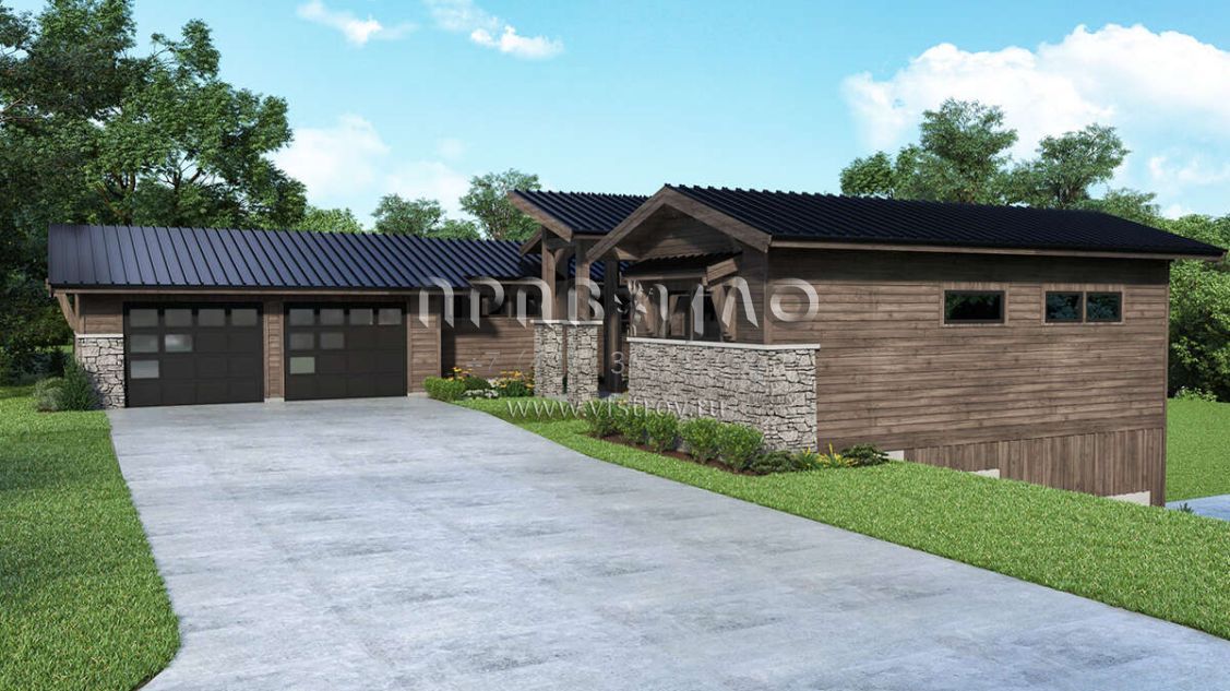 Проект одноэтажного дома с гаражом на две машины в современном стиле S5-291 (2464-00060)