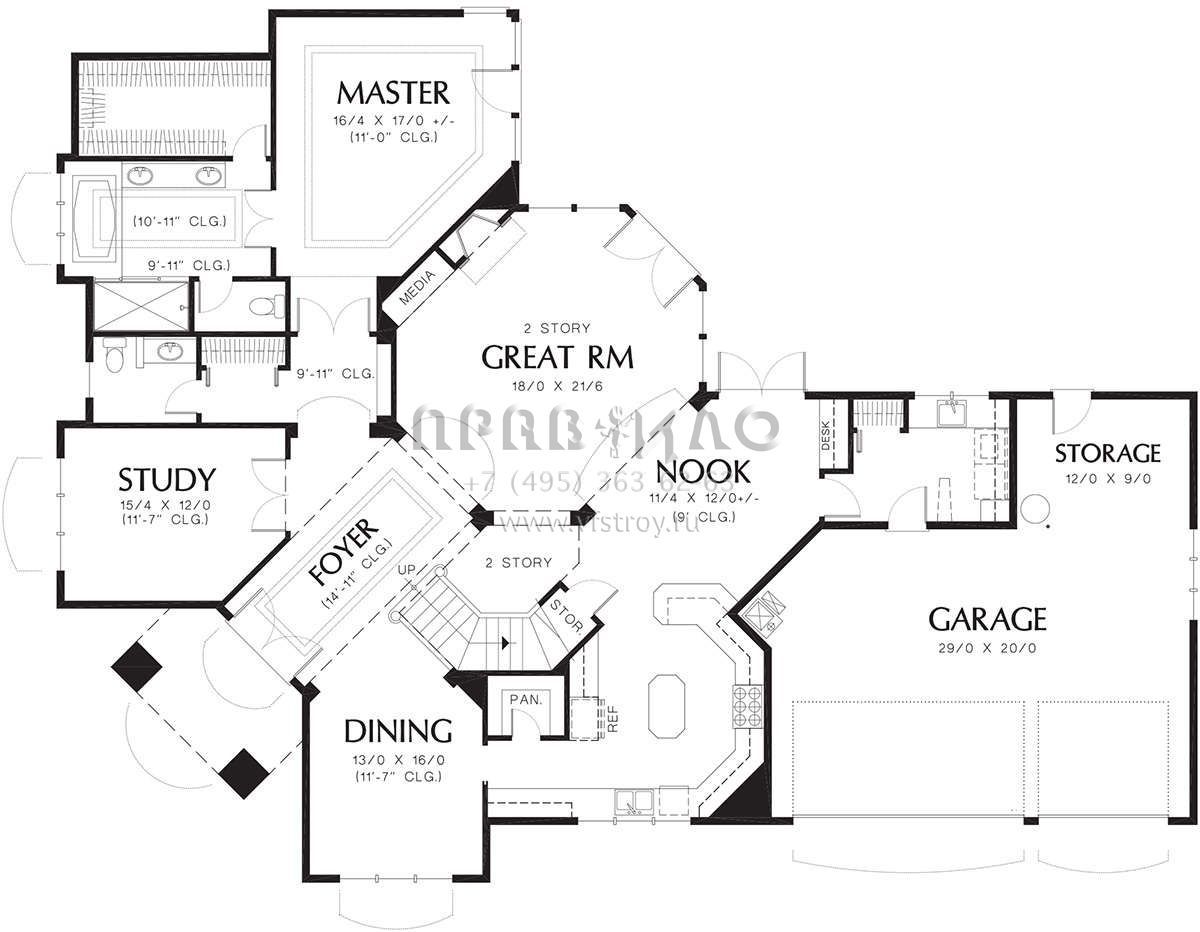 S5-291 (2559-00528) Это иностранный проект, для которого требуется адаптация под нормы, действующие в Российской Федерации. Вы видите проект дома в стиле Ранчо. В этом доме сочетаются черты сельской постройки и аскетичность лофта. Внутри жильцы смогут проводить время с максимальным комфортом. Обратим внимание, что сейчас на планировках все размеры представлены в футах. Для перевода в метры вам необходимо значение в футах умножить на 0,3048.