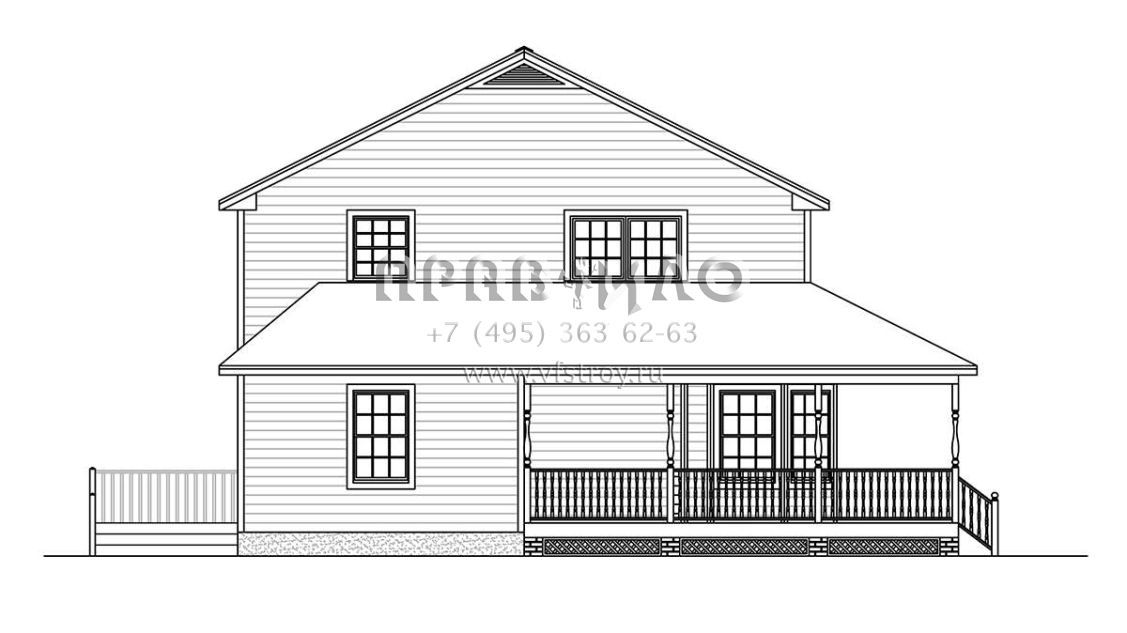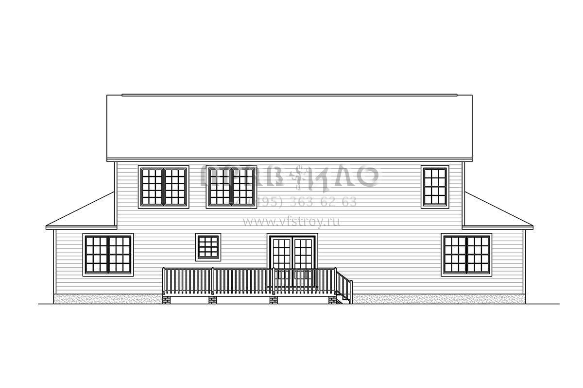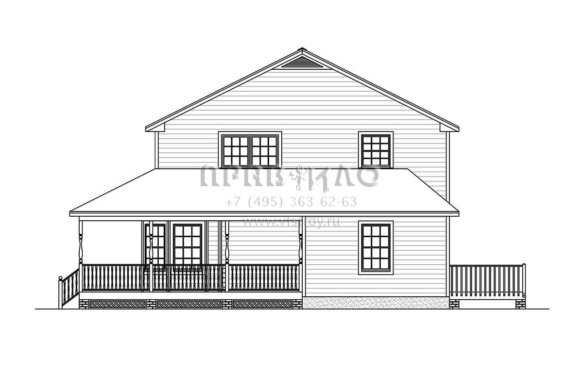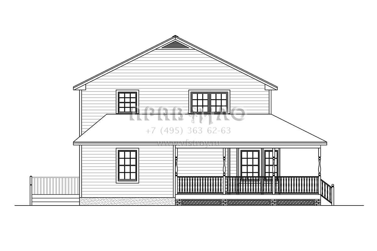 Двухэтажный проект дома позволяет рационально распорядиться площадью участка небольшого размера или узкой формы. На первом этаже находятся общие комнаты (гостиная/столовая, кухня, подсобные и технические помещения), на втором — спальни членов семьи.