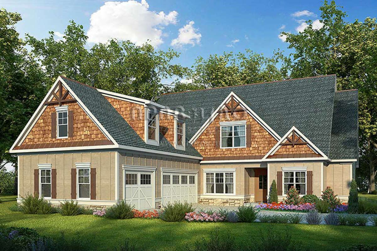 Проект двухэтажного дома с гаражом на три и более машин в американском стиле S5-291 (6082-00049)