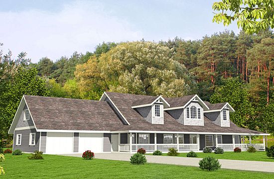 Проект двухэтажного дома с гаражом на две машины в стиле Ранчо S5-291 (8594-00245)