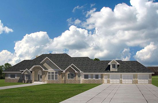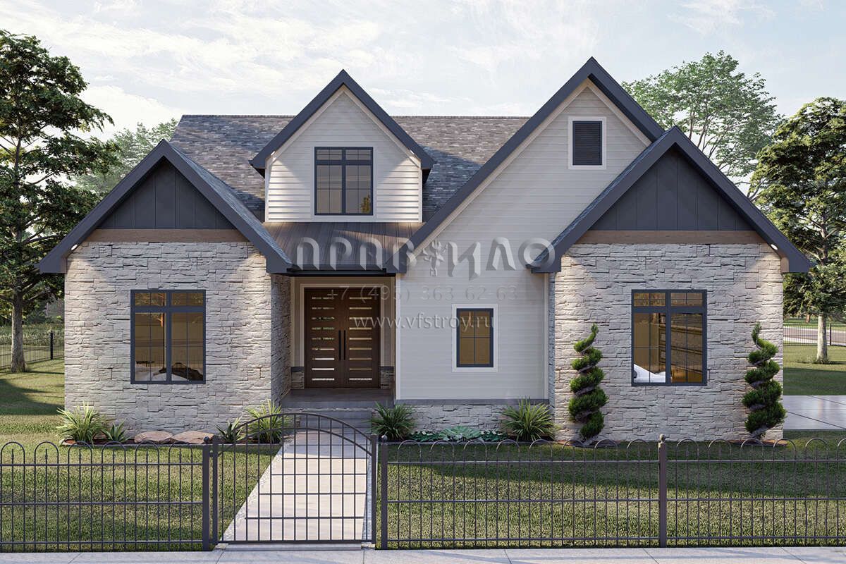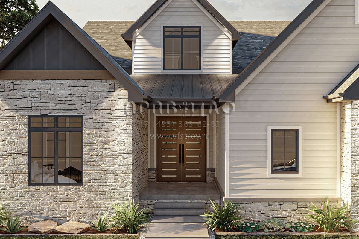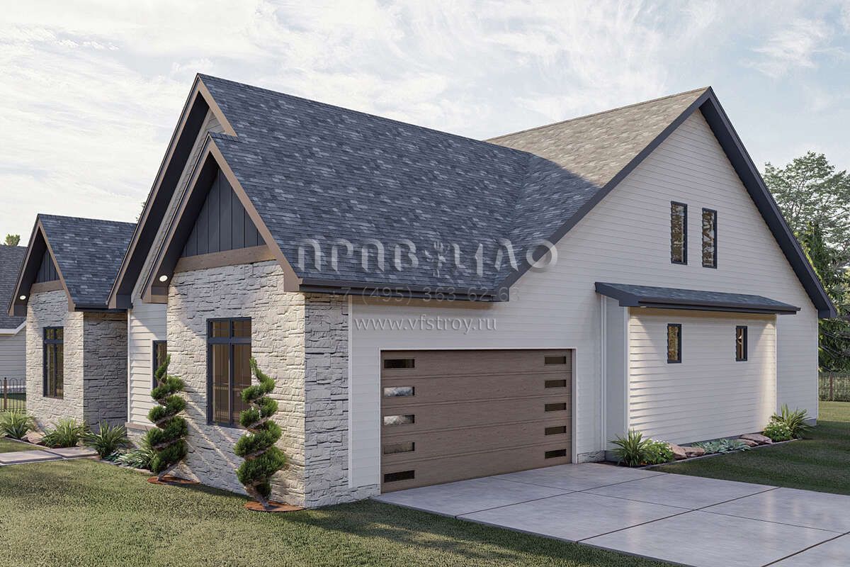Проект двухэтажного дома с гаражом на две машины в стиле Ранчо S5-291 (963-00711)