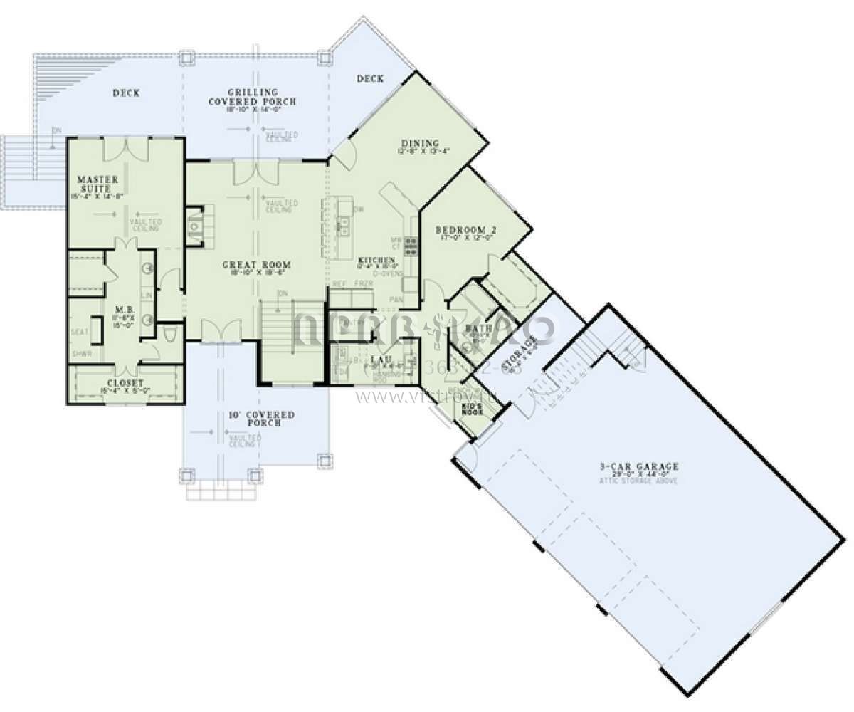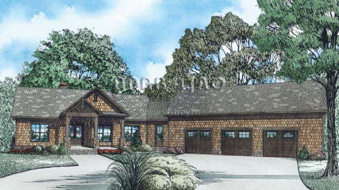 Проект одноэтажного дома с гаражом на три и более машин в стиле Шале S5-292 (110-00975)