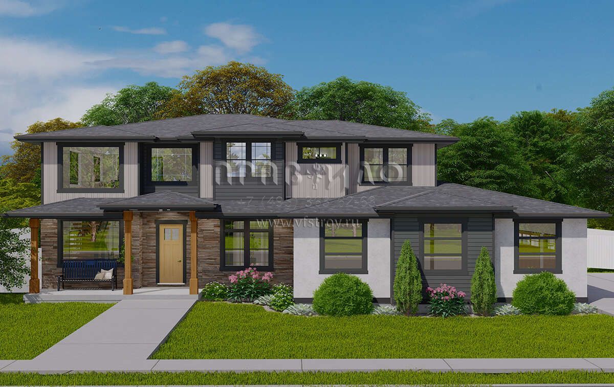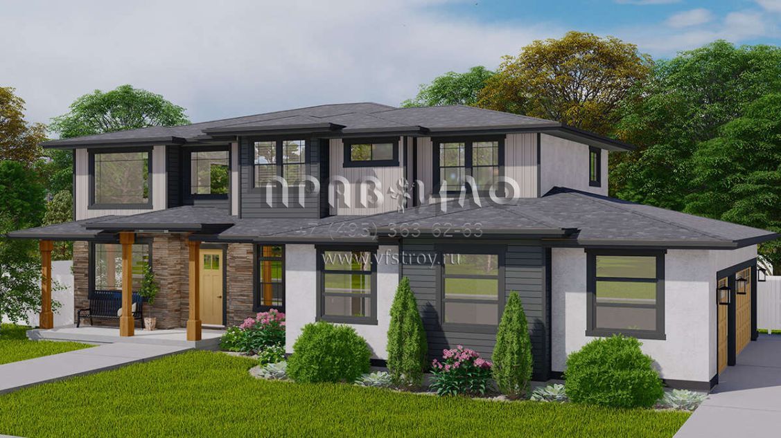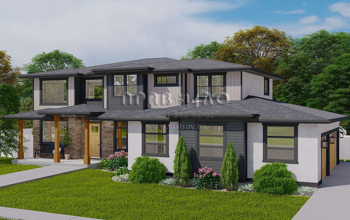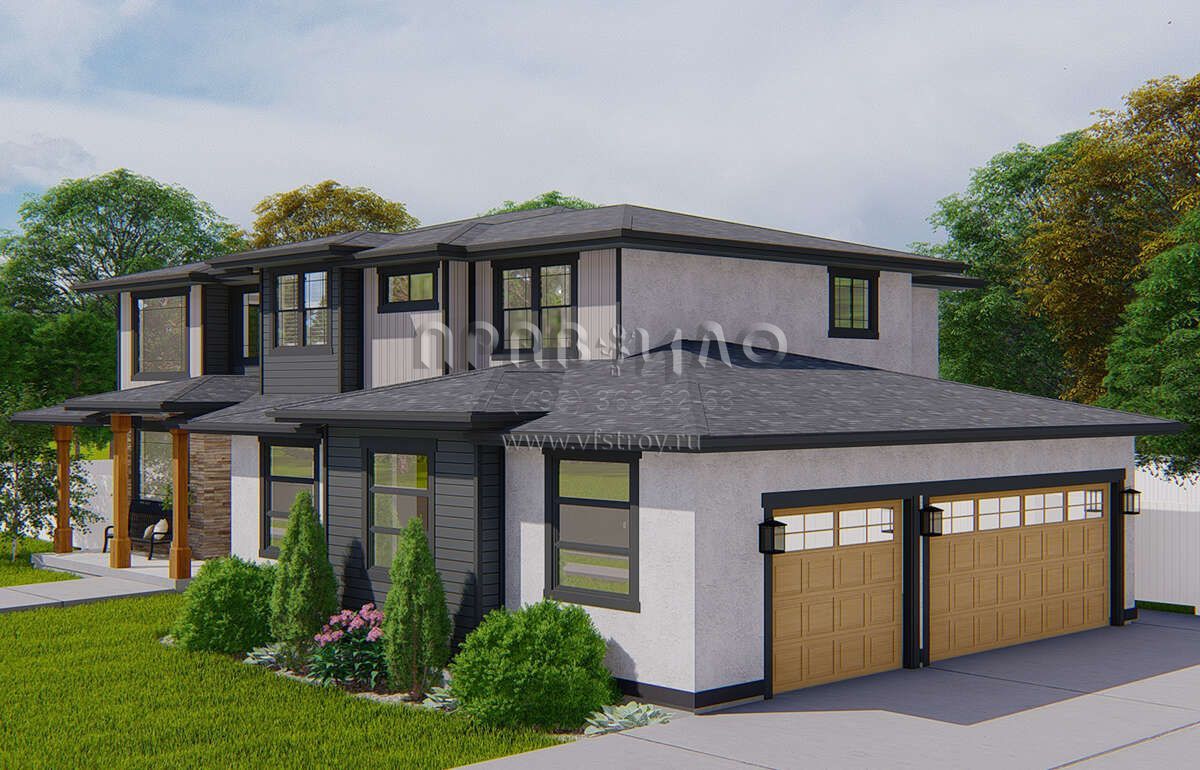 Проект двухэтажного дома с гаражом на три и более машин в современном стиле S5-292 (2802-00184)