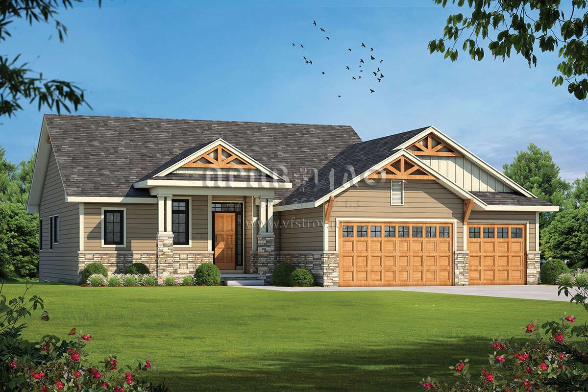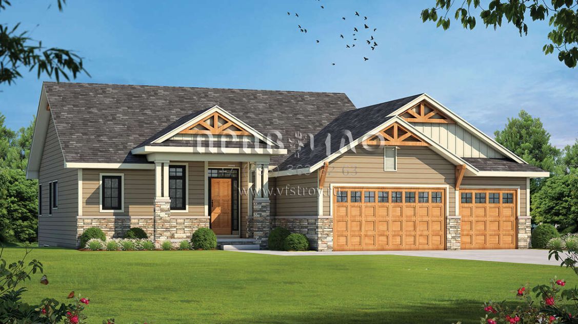 Проект одноэтажного дома с гаражом на три и более машин в американском стиле S5-292 (402-01742)