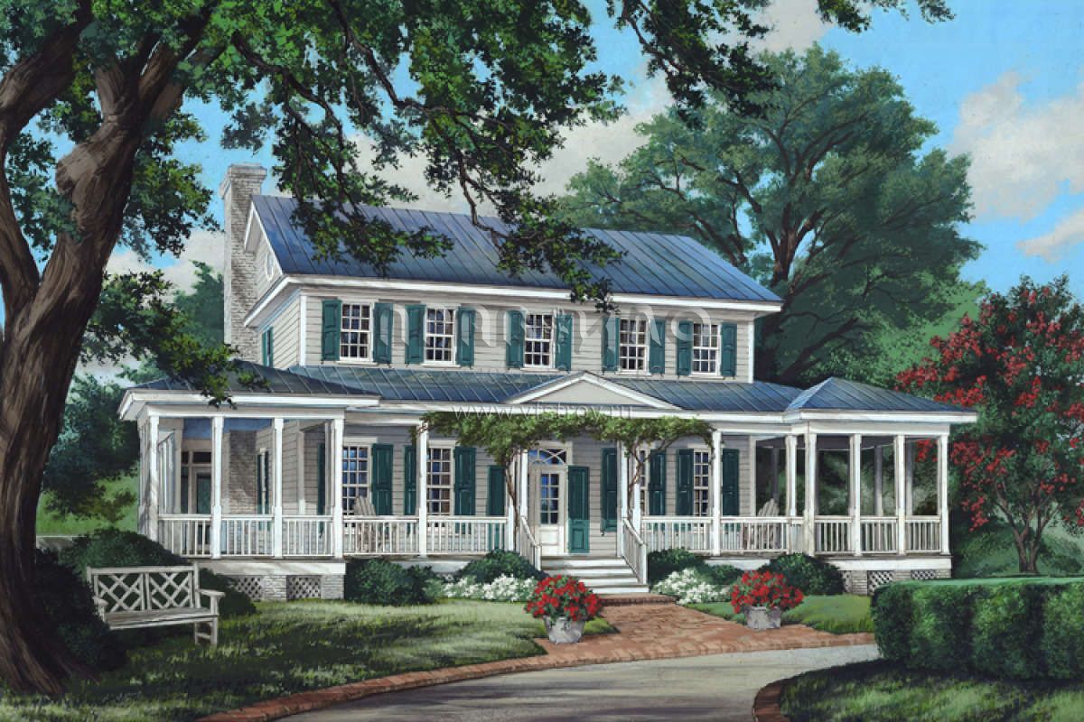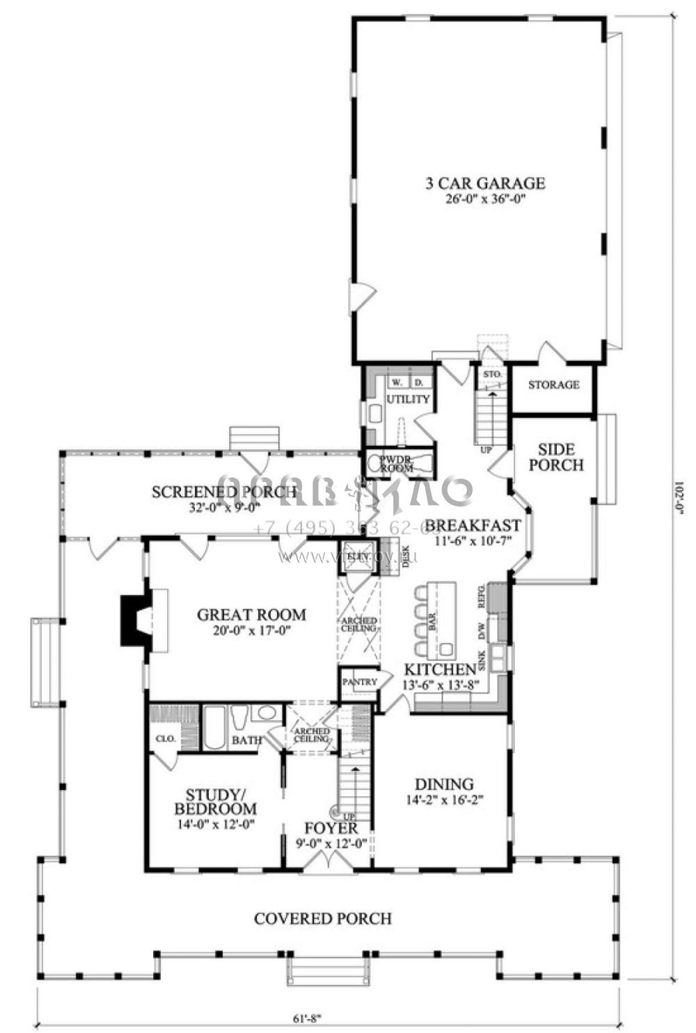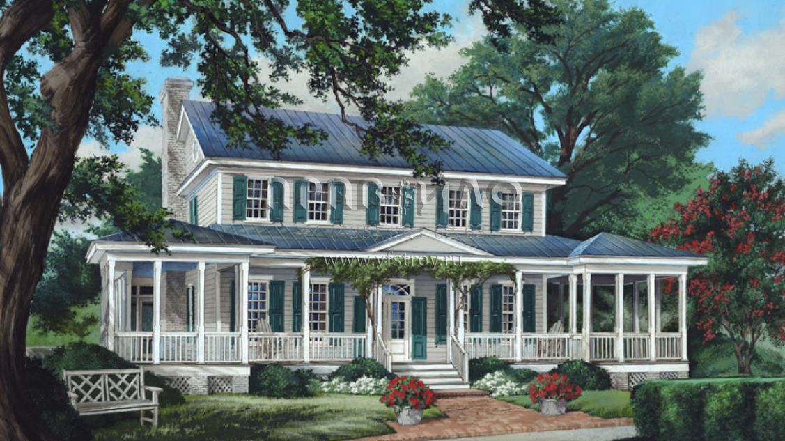 Проект двухэтажного дома с гаражом на три и более машин в стиле Ранчо S5-292 (7922-00115)