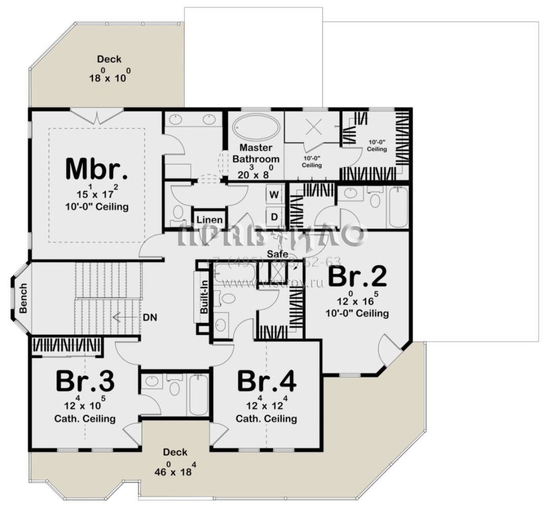Поскольку этот проект разрабатывался иностранными архитекторами, для строительства дома требуется переработка проекта под действующие в России нормы. Данные визуализации проекта представлены для ознакомления с концепцией проекта. Проект разработан американским архитектурным бюро и представлен America's Best House Plans.