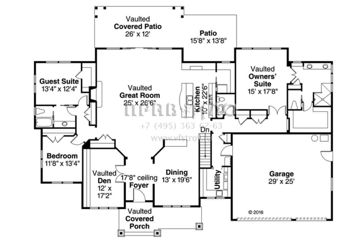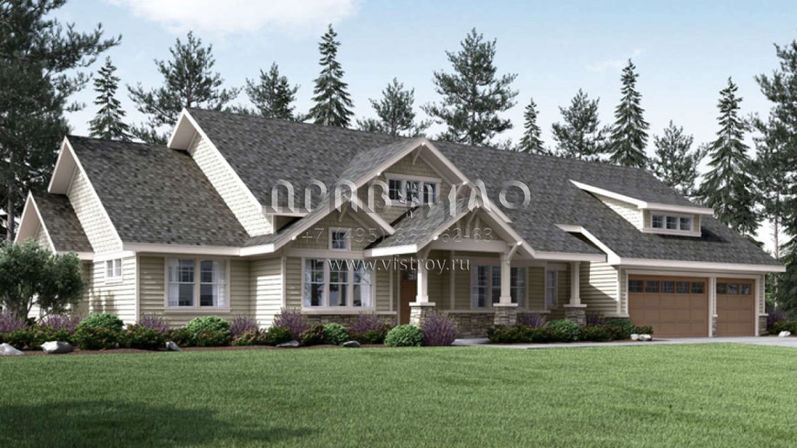 Проект одноэтажного дома с гаражом на три и более машин в американском стиле S5-293 (035-00710)