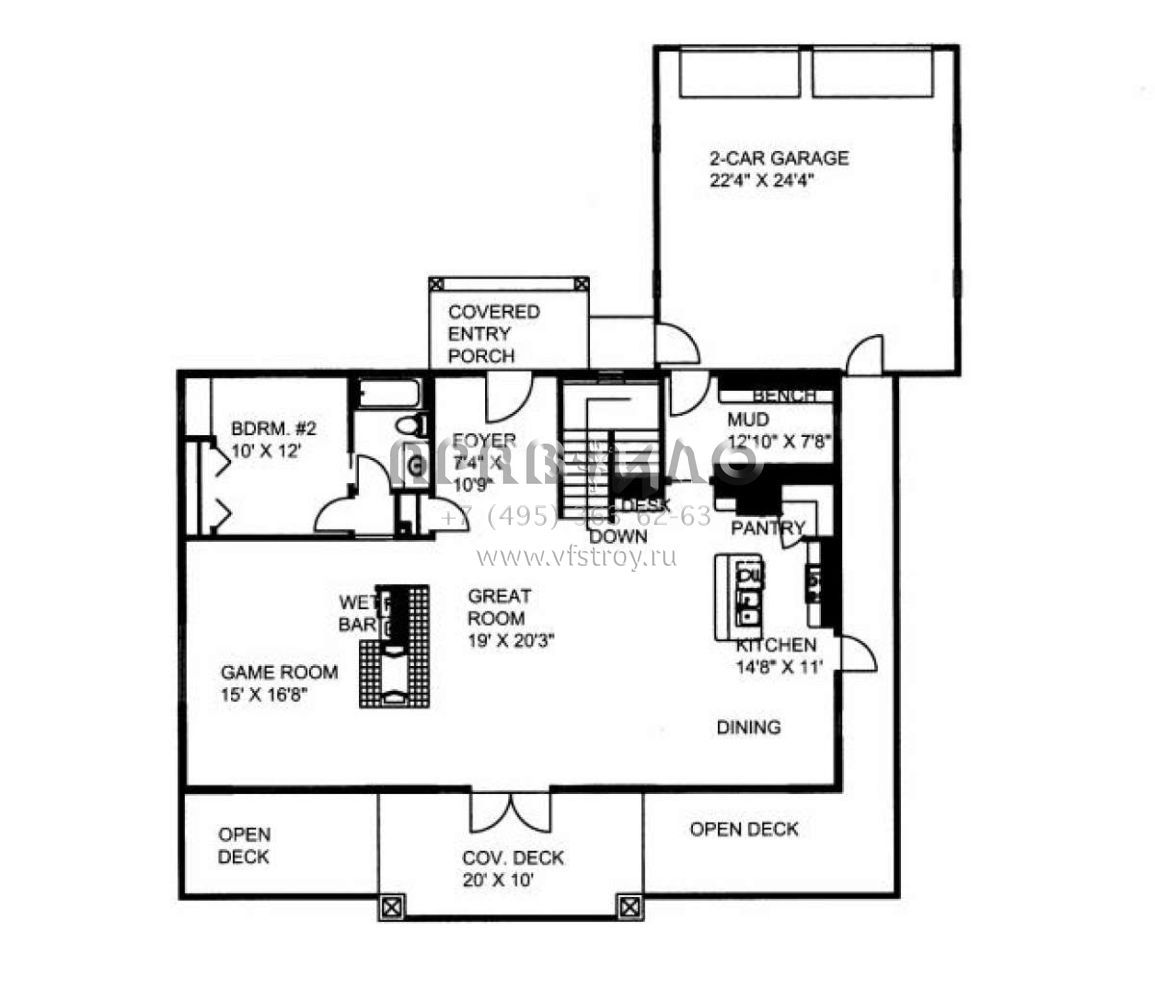 S5-293 (039-00549) Это иностранный проект, для которого требуется адаптация под нормы, действующие в Российской Федерации. Вы видите проект дома в современном стиле. В этом доме сочетаются черты сельской постройки и аскетичность лофта. Внутри жильцы смогут проводить время с максимальным комфортом. Обратим внимание, что сейчас на планировках все размеры представлены в футах. Для перевода в метры вам необходимо значение в футах умножить на 0,3048.