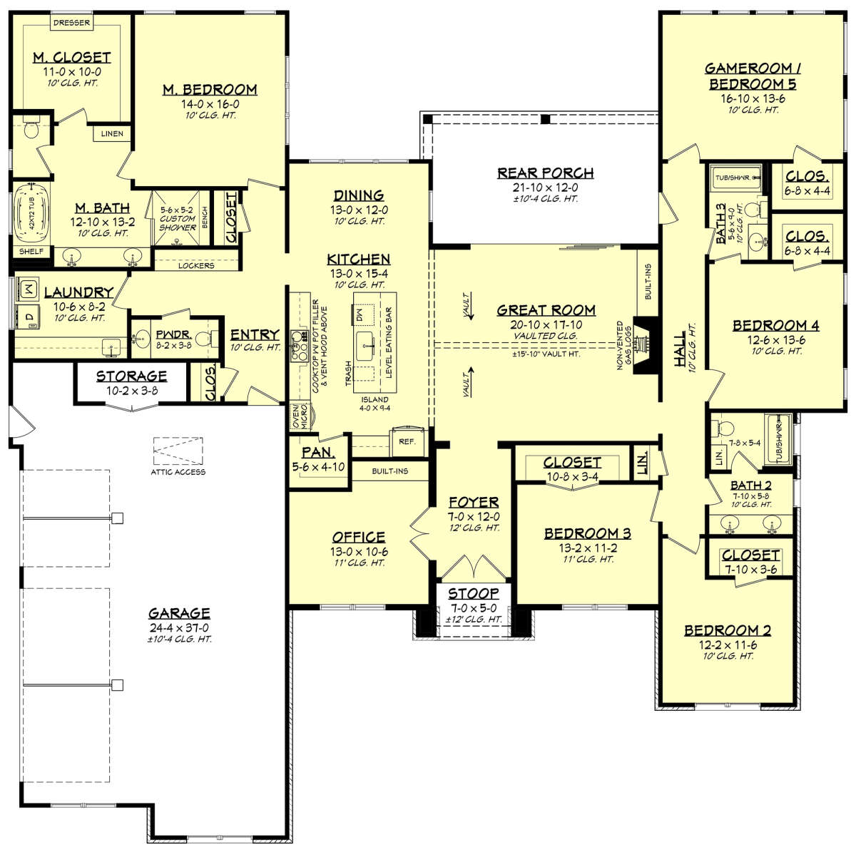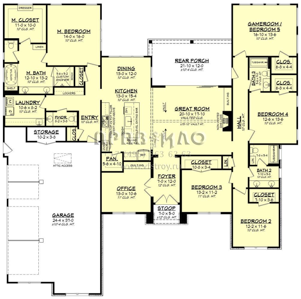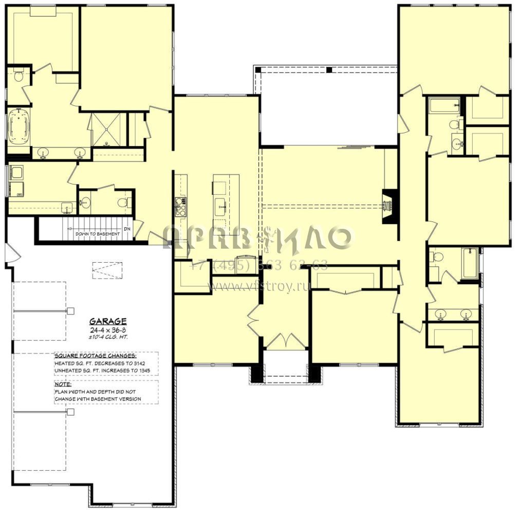Проект одноэтажного дома с гаражом на три и более машин в английском стиле S5-293 (041-00298)