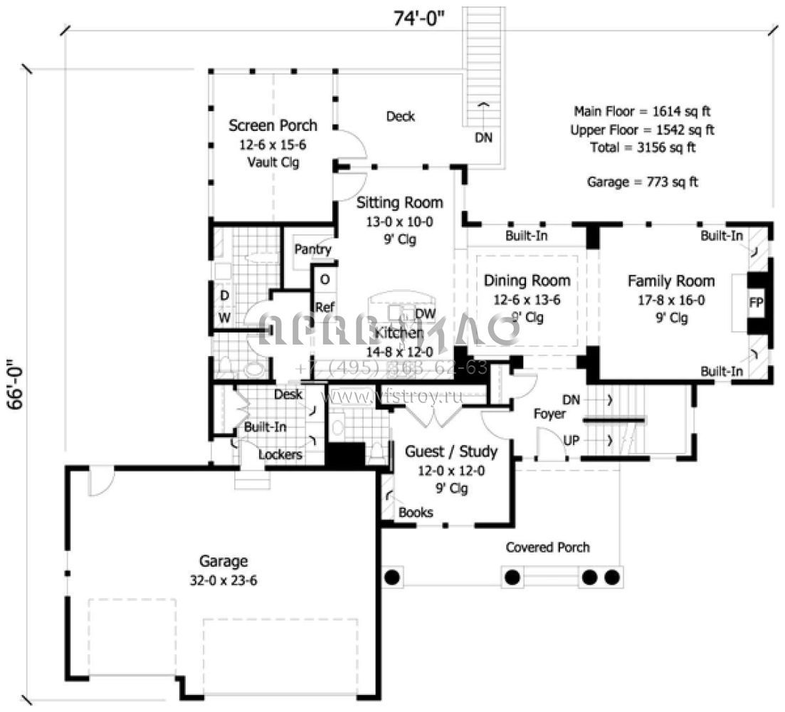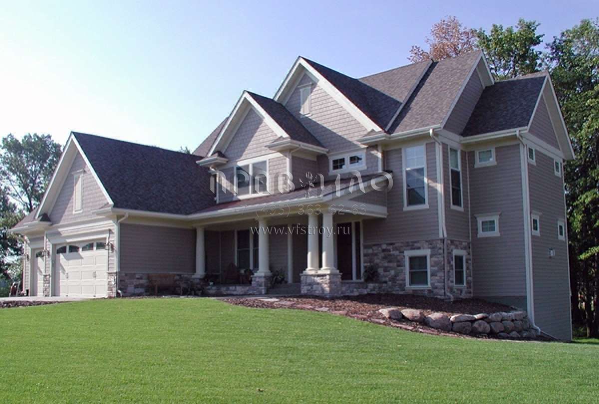 Проект двухэтажного дома с гаражом на три и более машин в стиле Ранчо S5-293 (098-00180)