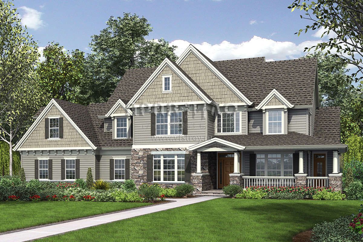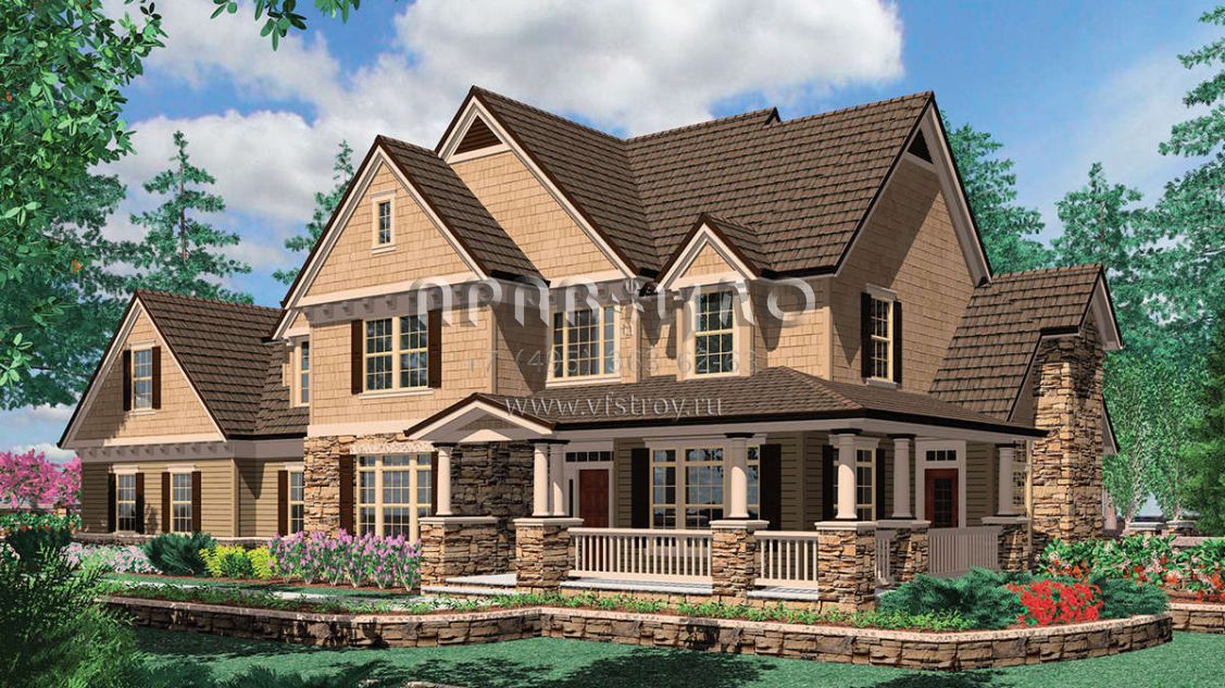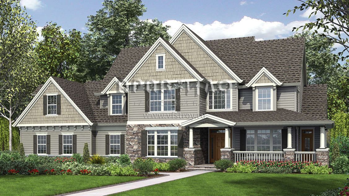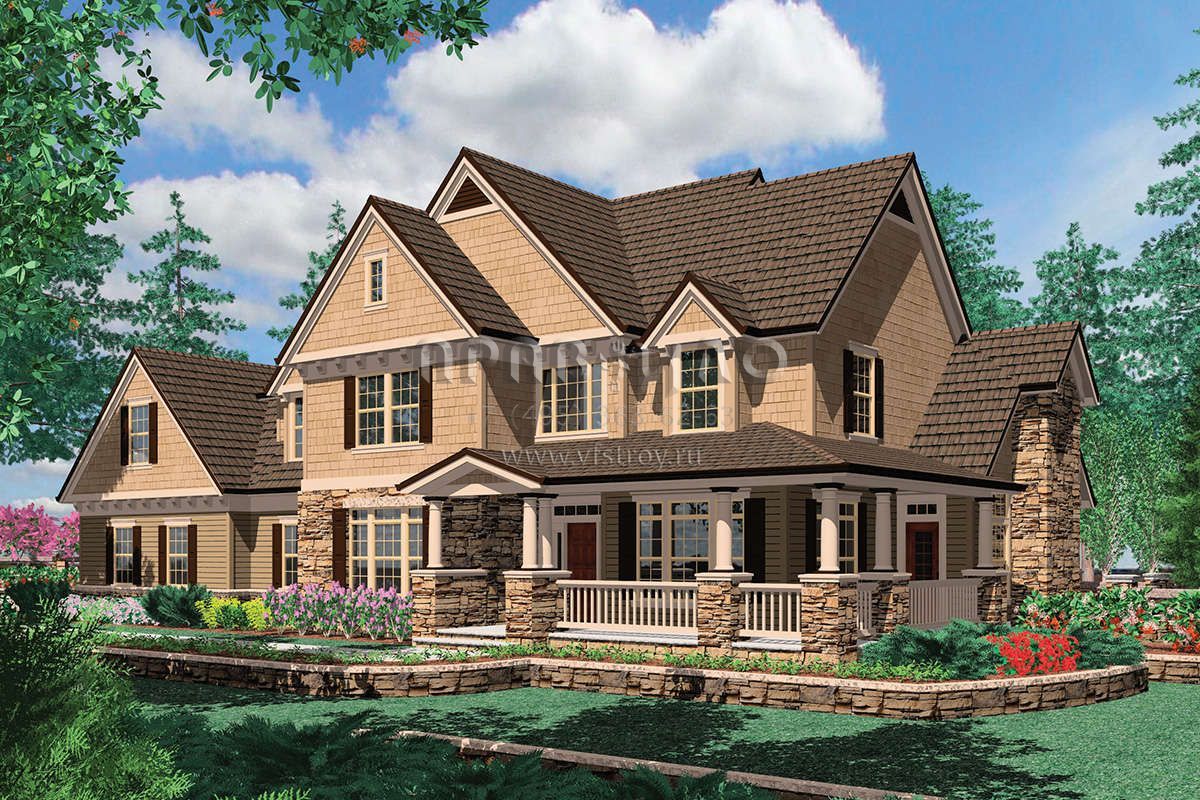 Проект двухэтажного дома с гаражом на три и более машин в американском стиле S5-293 (2559-00540)