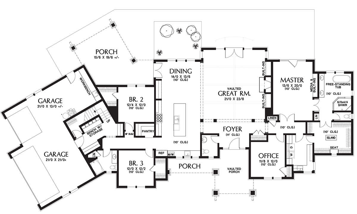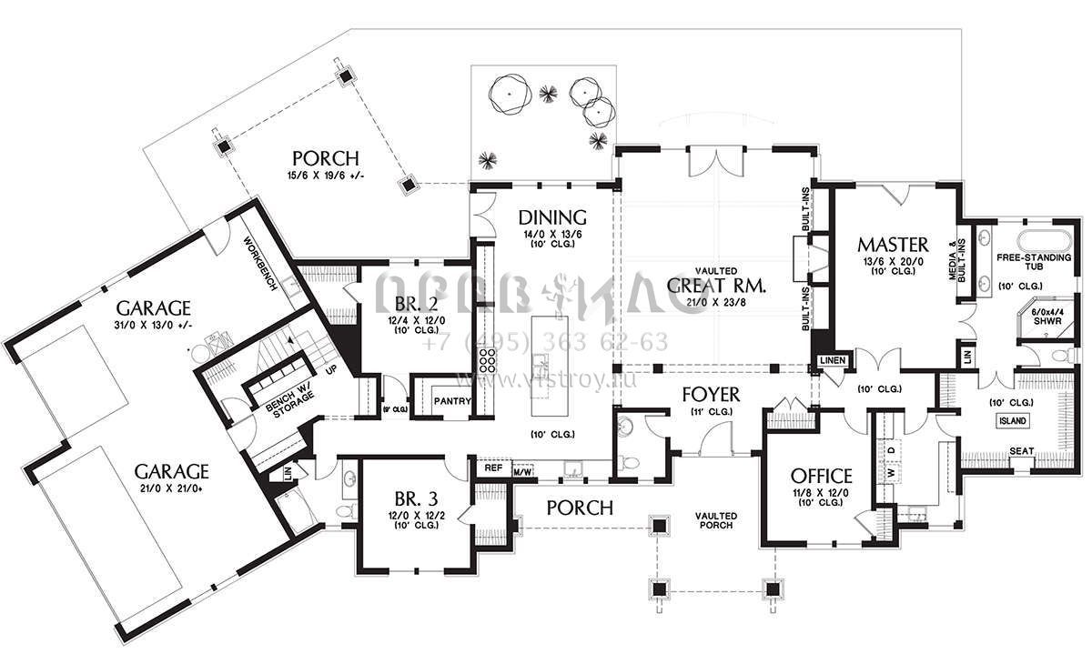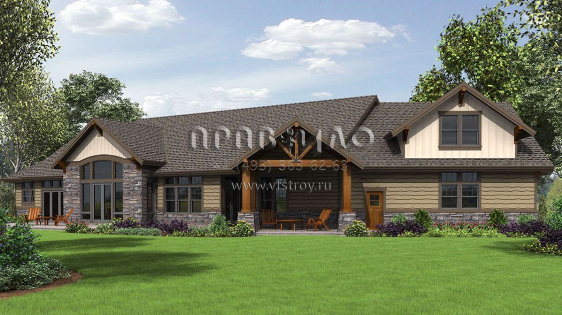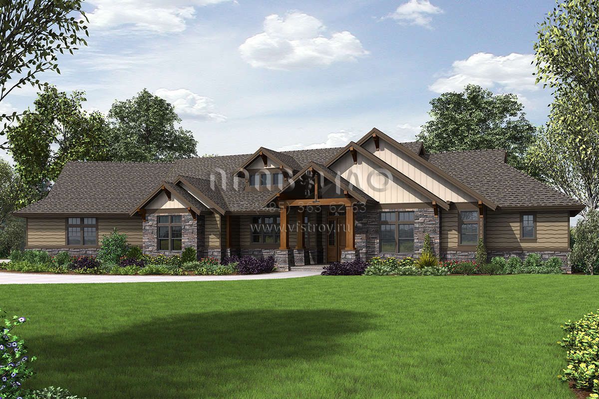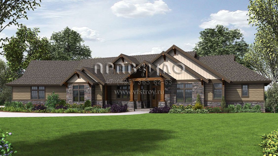 Проект одноэтажного дома с гаражом на три и более машин в американском стиле S5-293 (2559-00717)