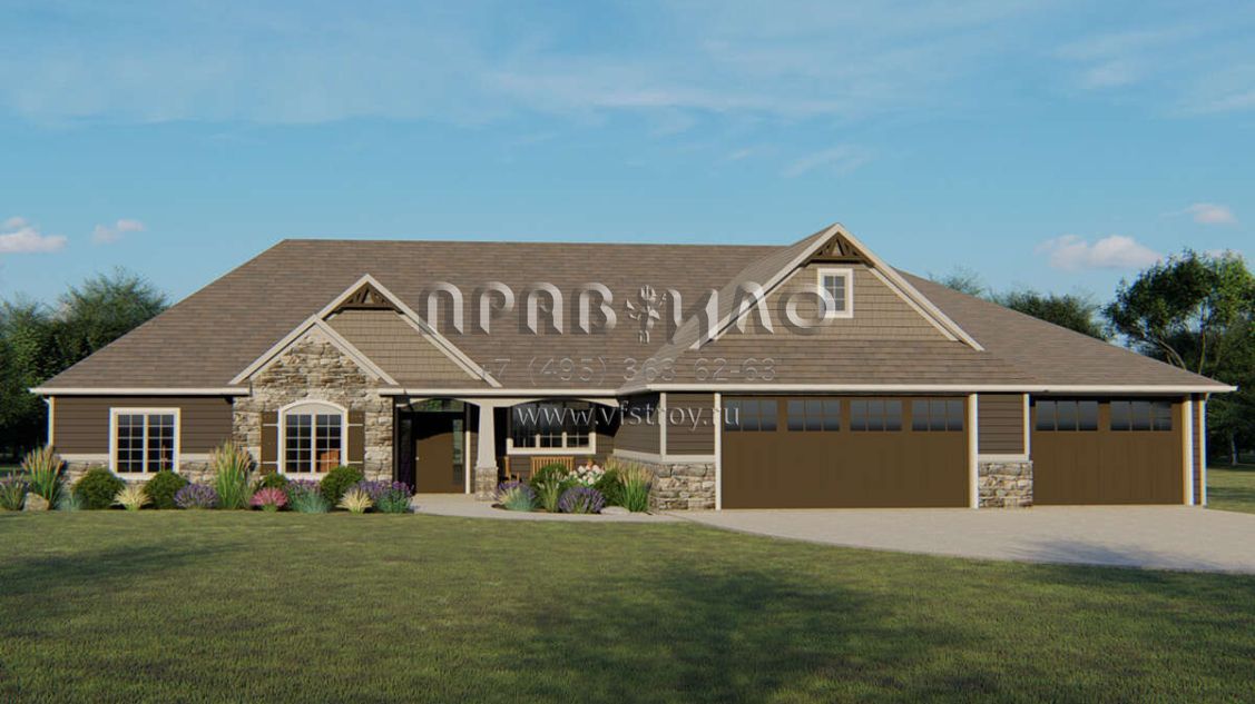 Проект одноэтажного дома с гаражом на три и более машин в американском стиле S5-293 (5032-00042)