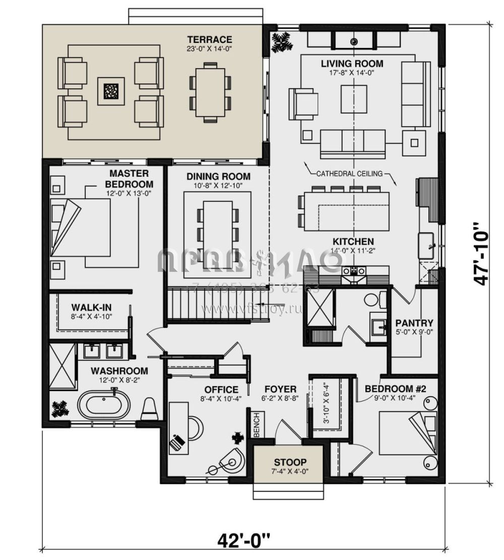 Поскольку этот проект разрабатывался иностранными архитекторами, для строительства дома требуется переработка проекта под действующие в России нормы. Данные визуализации проекта представлены для ознакомления с концепцией проекта. Проект разработан американским архитектурным бюро и представлен America's Best House Plans.