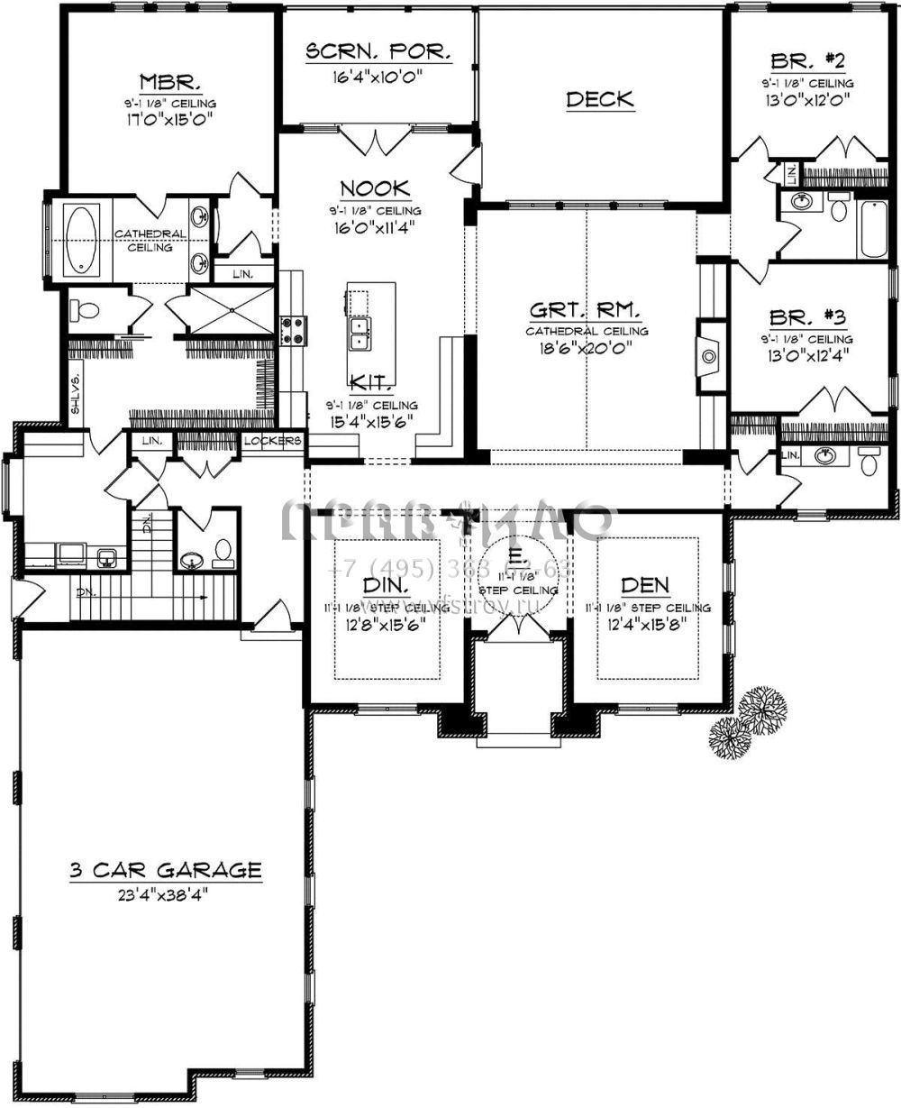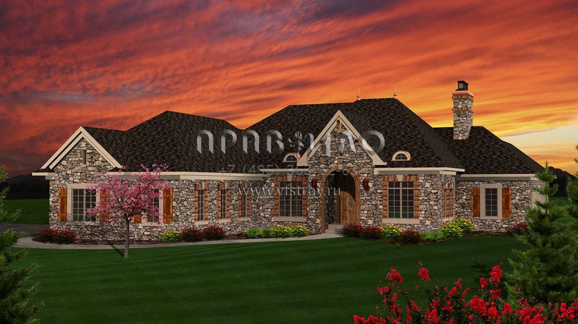 Проект одноэтажного дома с гаражом на три и более машин в английском стиле S5-294 (1020-00199)
