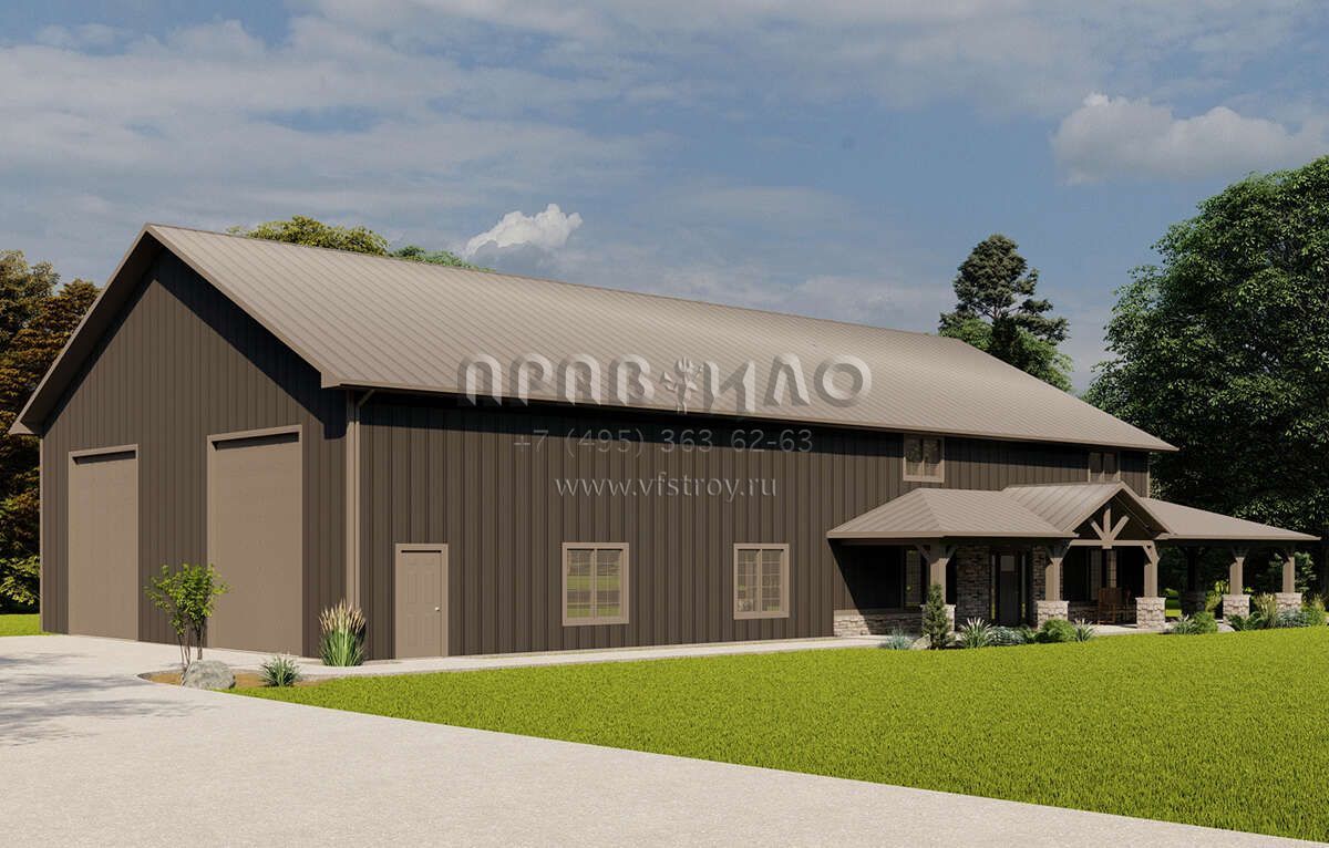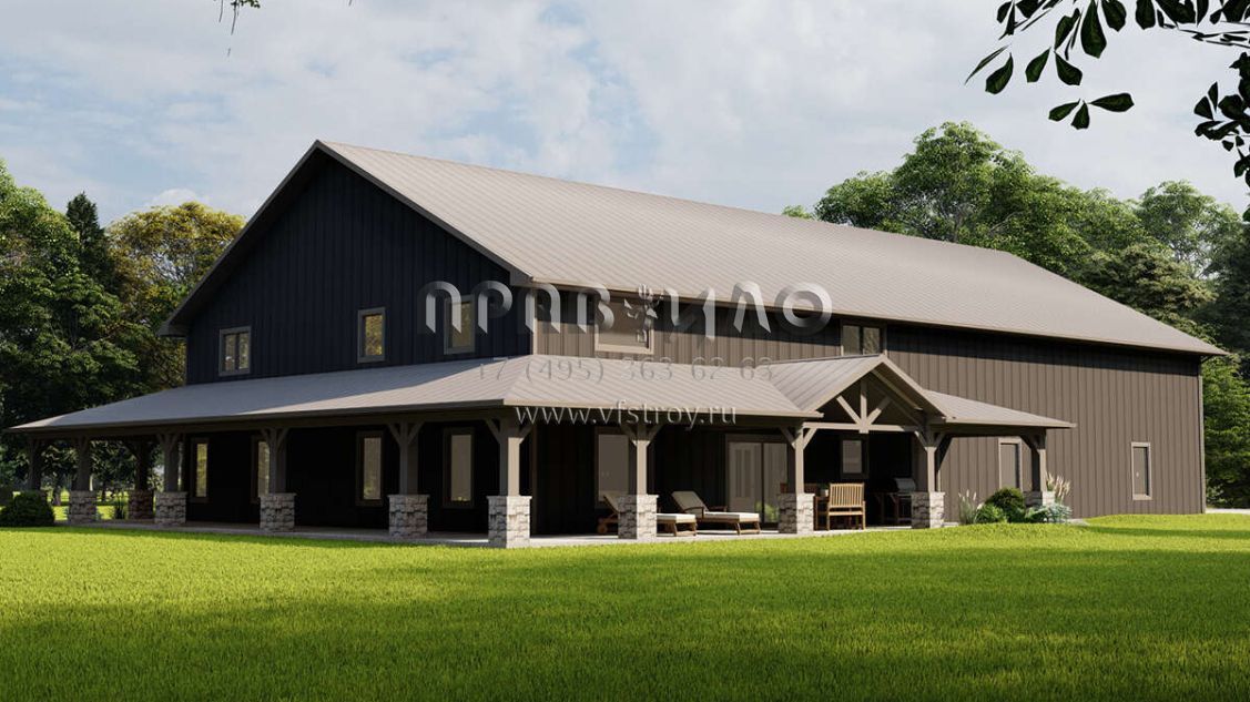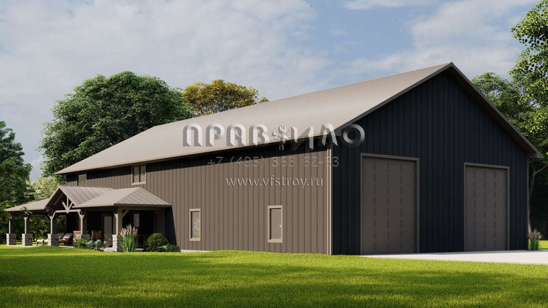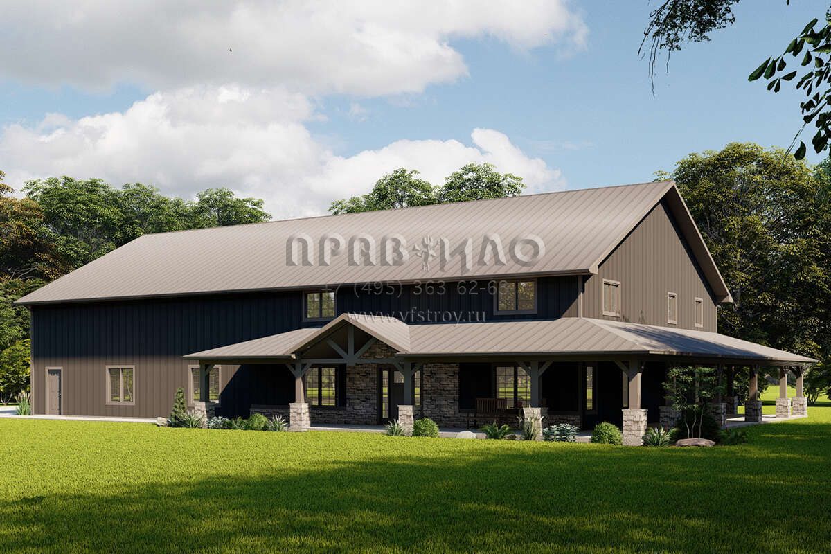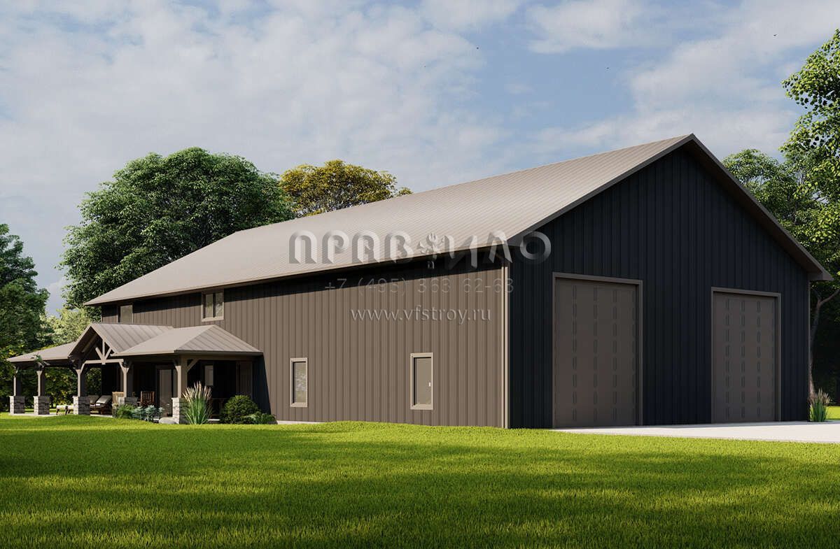 Проект двухэтажного дома с гаражом на две машины в стиле БарнХаус S5-294 (5032-00159)