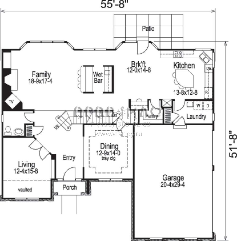 Проект одноэтажного дома с гаражом на три и более машин в стиле Ранчо S5-294 (5633-00076)