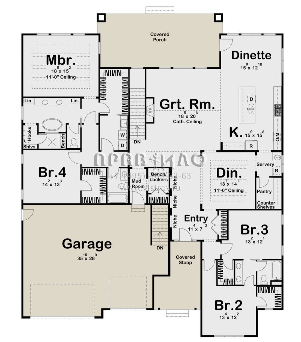 Проект одноэтажного дома с гаражом на три и более машин в современном стиле S5-294 (963-00688)