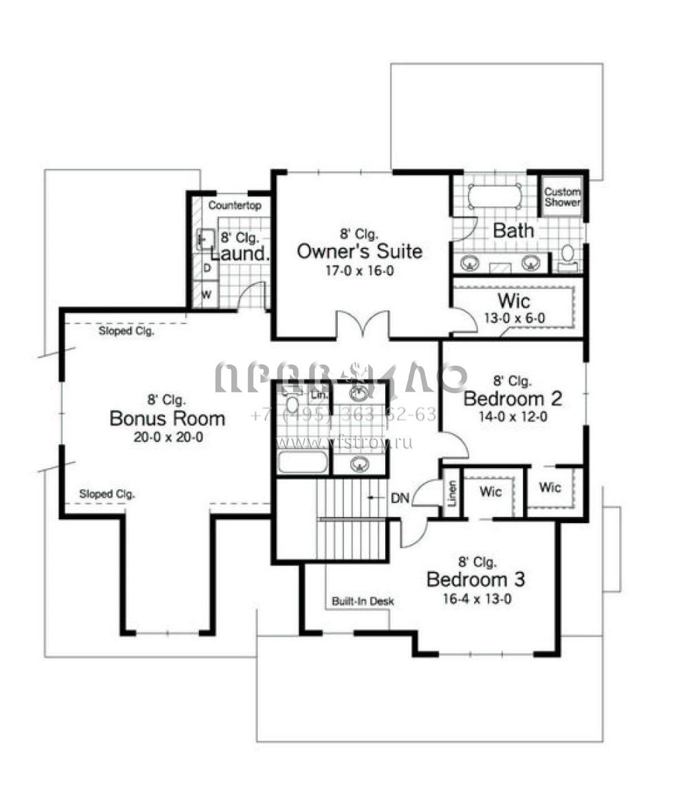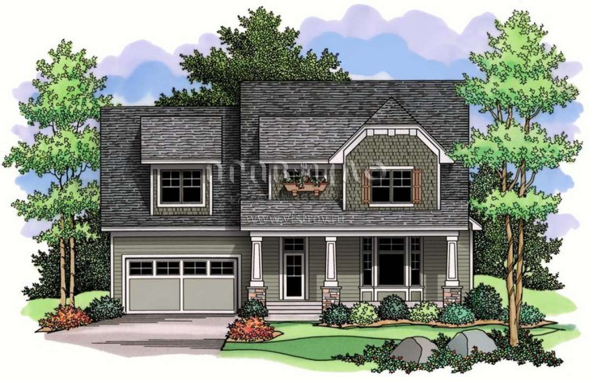 Проект двухэтажного дома с гаражом на две машины в американском стиле S5-296 (098-00023)