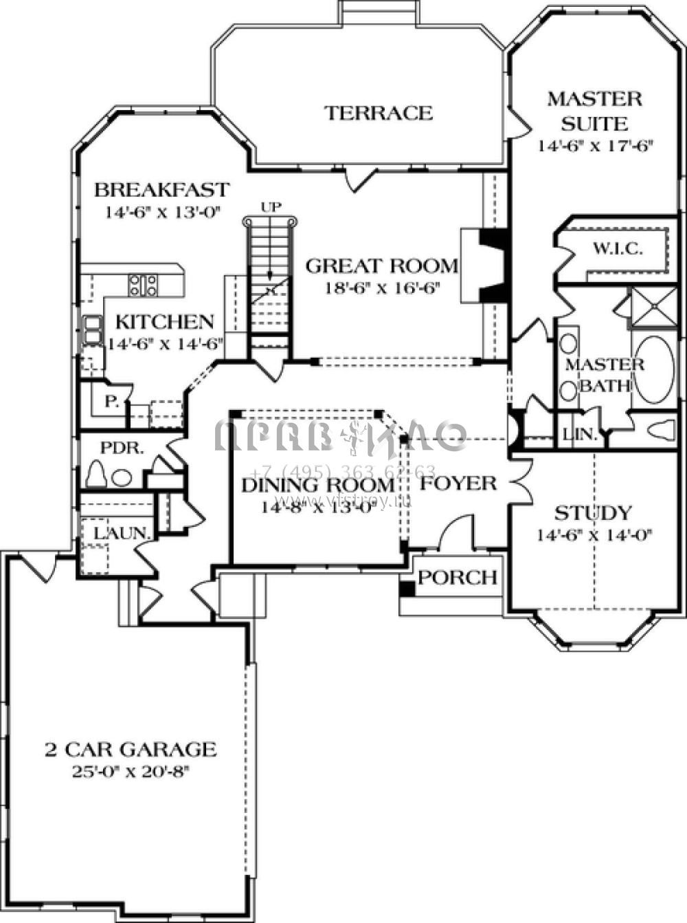 Проект двухэтажного дома с гаражом на две машины в стиле Ранчо S5-296 (3323-00209)