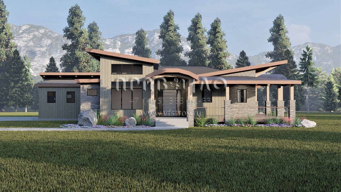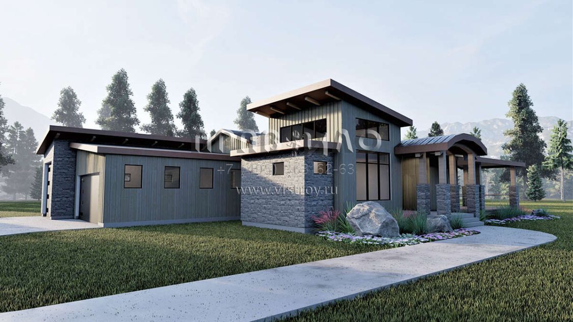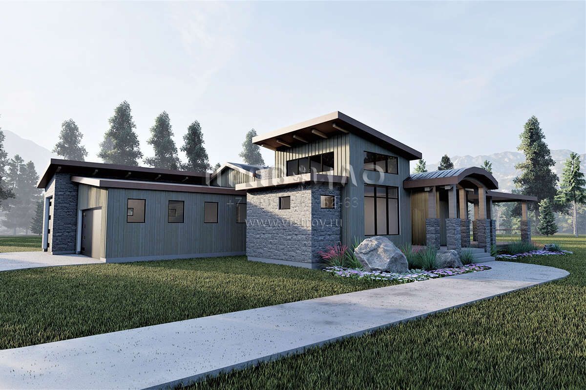 Проект двухэтажного дома с гаражом на три и более машин в современном стиле S5-296 (6422-00041)