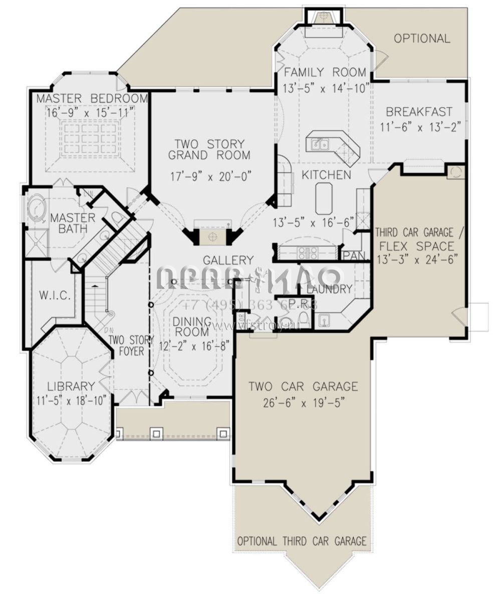 Проект двухэтажного дома с гаражом на три и более машин в английском стиле S5-296 (699-00220)