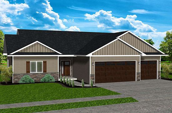 Проект одноэтажного дома с гаражом на три и более машин в стиле Ранчо S5-297 (1020-00248)