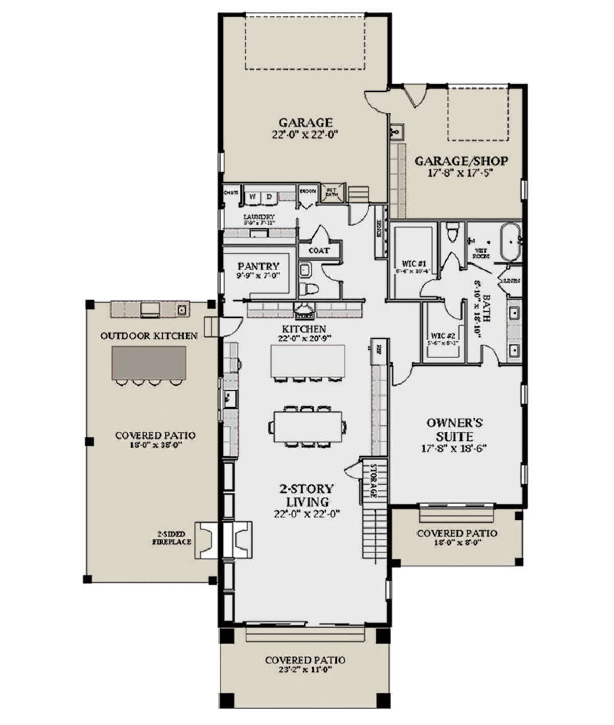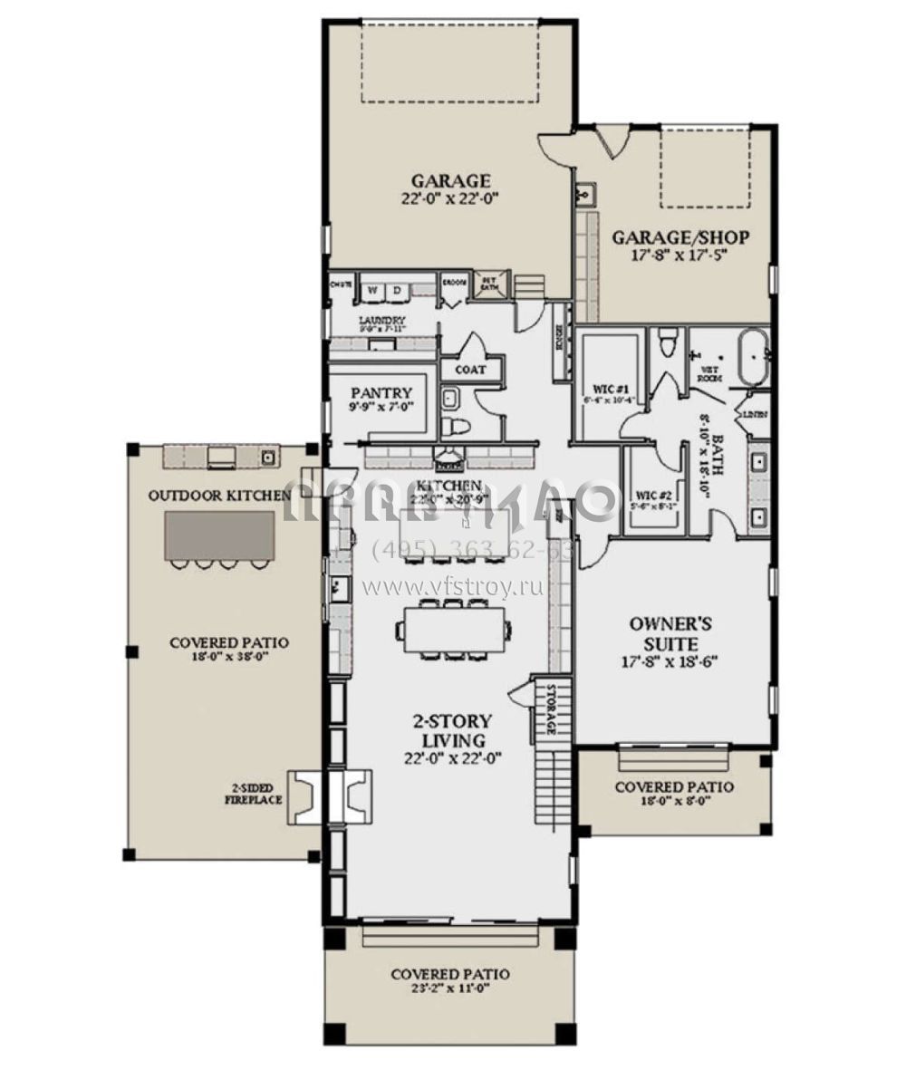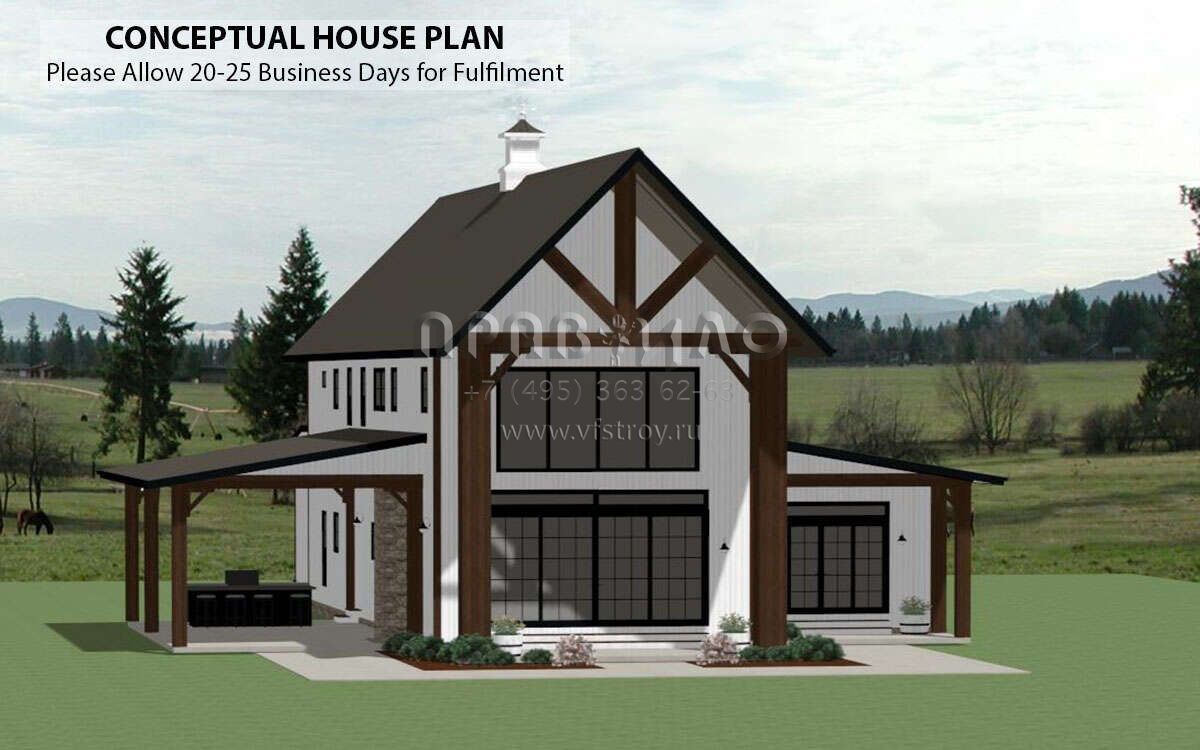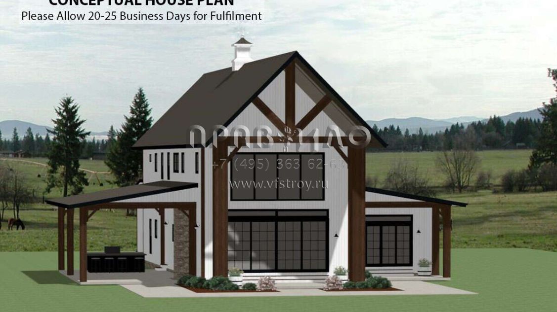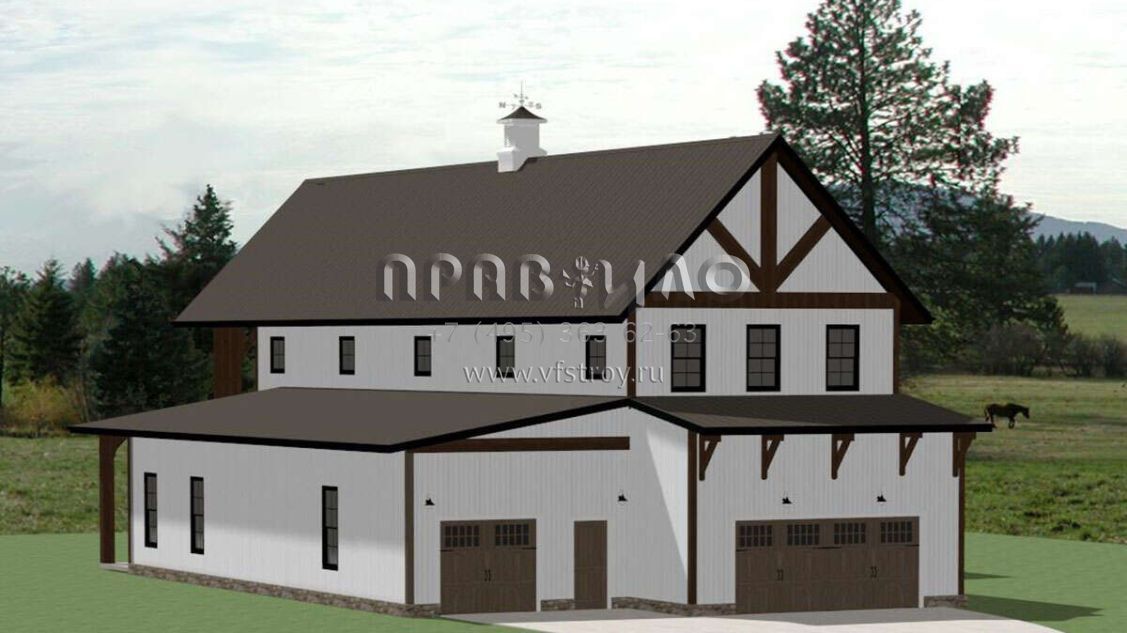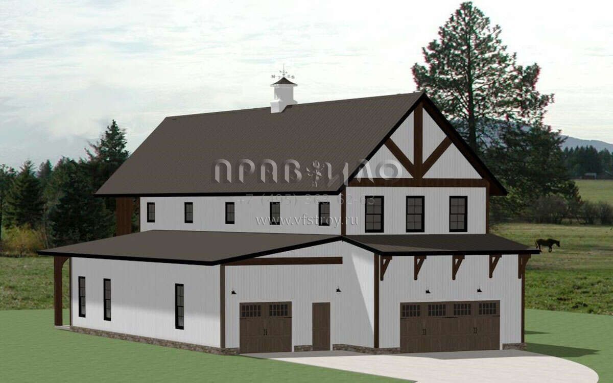 Проект двухэтажного дома с гаражом на три и более машин в стиле БарнХаус S5-297 (6849-00152)