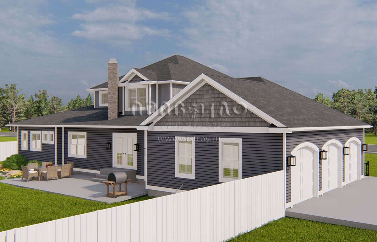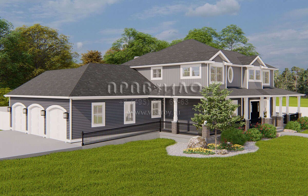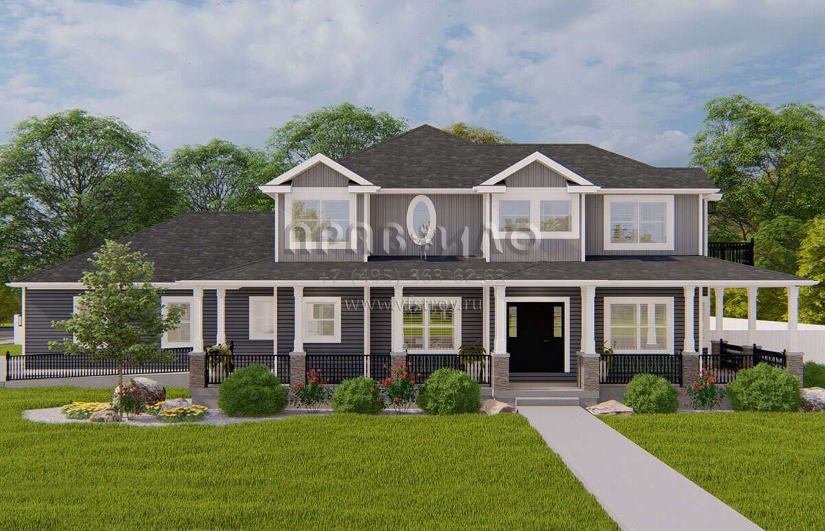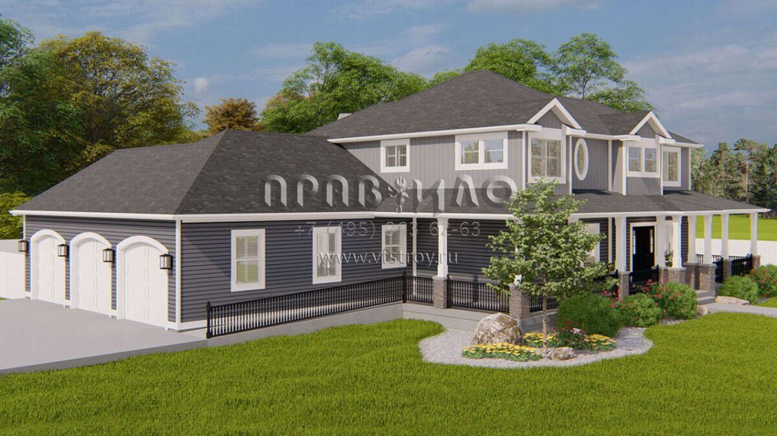 Проект двухэтажного дома с гаражом на три и более машин в американском стиле S5-298 (2802-00136)