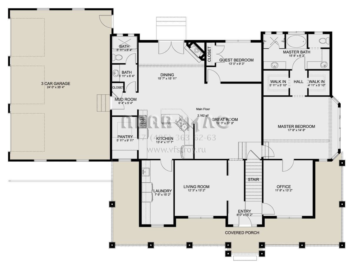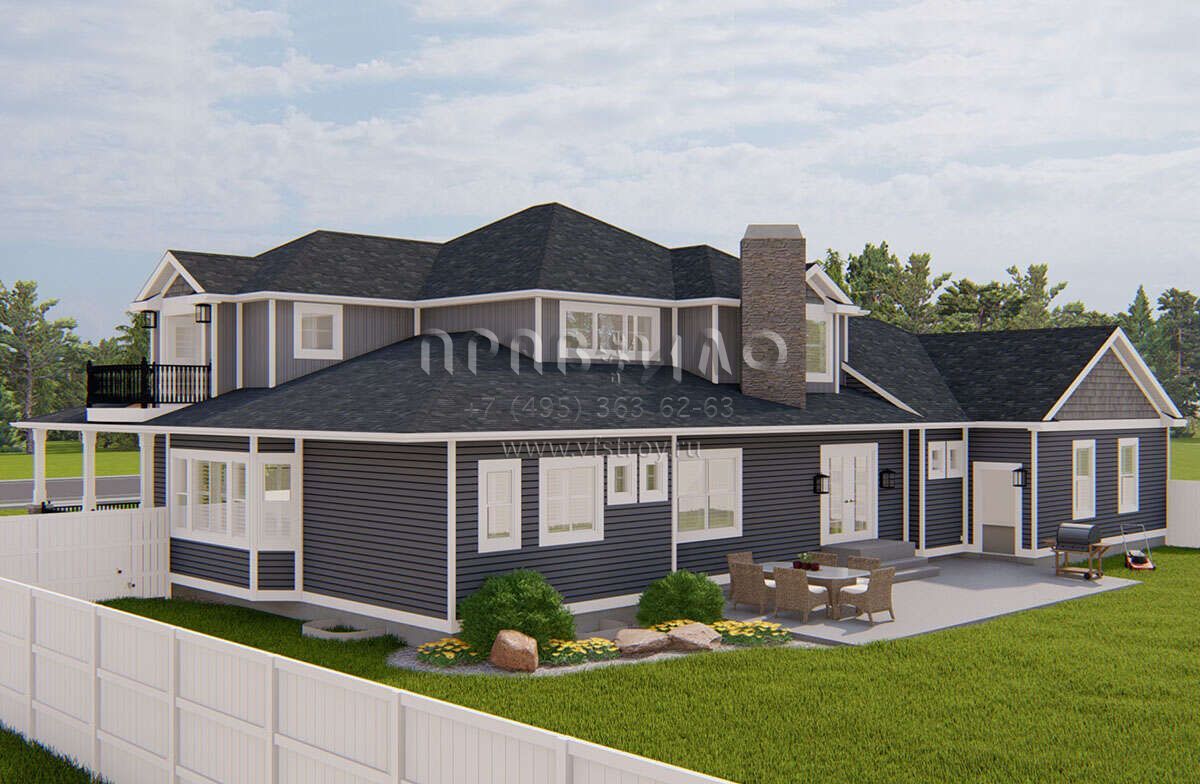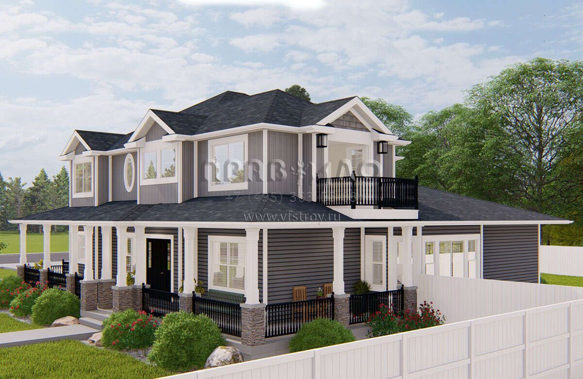 Проект двухэтажного дома с гаражом на три и более машин в американском стиле S5-298 (2802-00136)