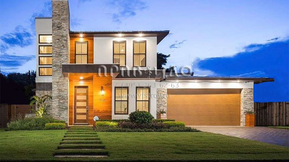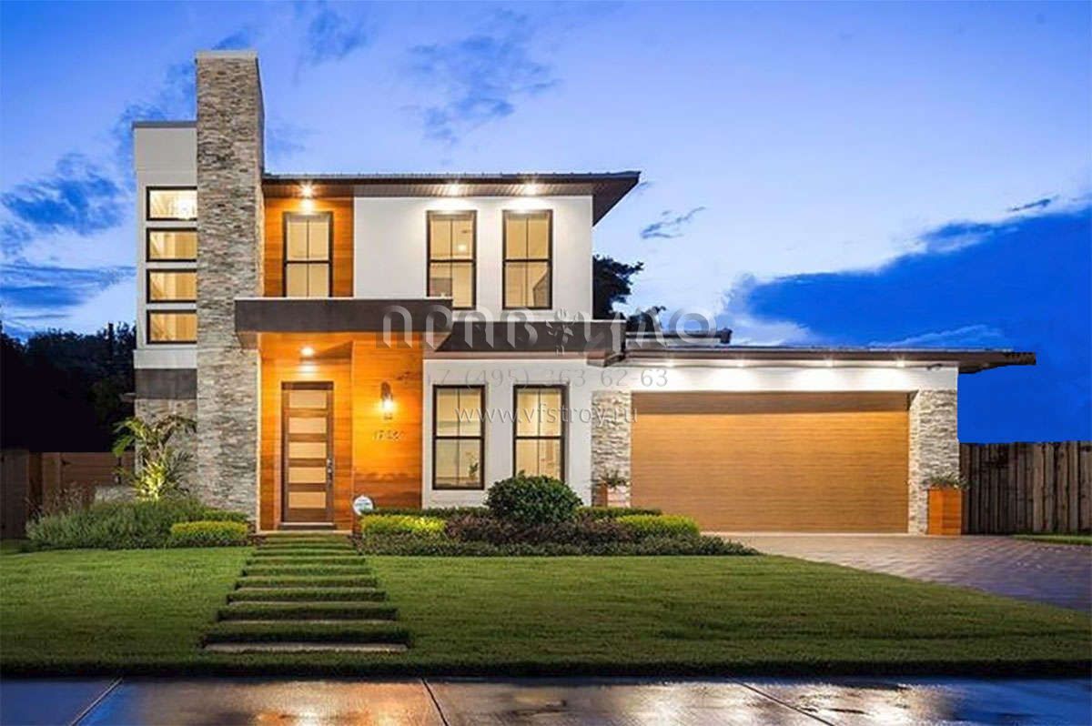 Проект двухэтажного дома с гаражом на две машины в современном стиле S5-298 (3978-00191)