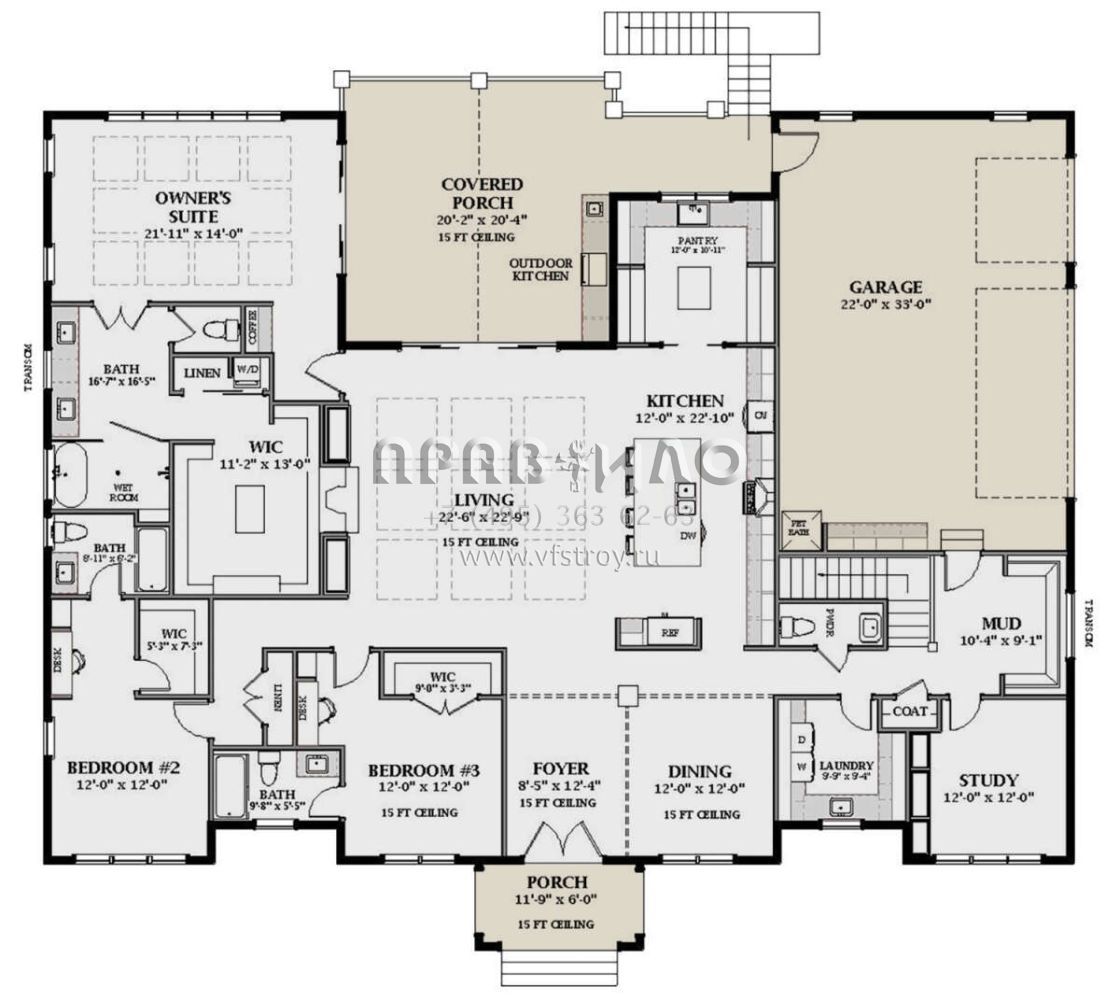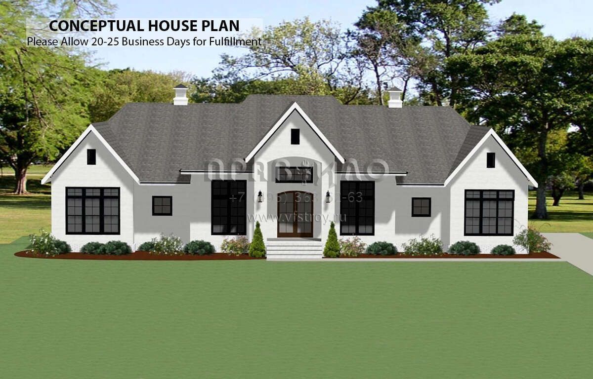 Проект одноэтажного дома с гаражом на три и более машин в английском стиле S5-298 (6849-00159)