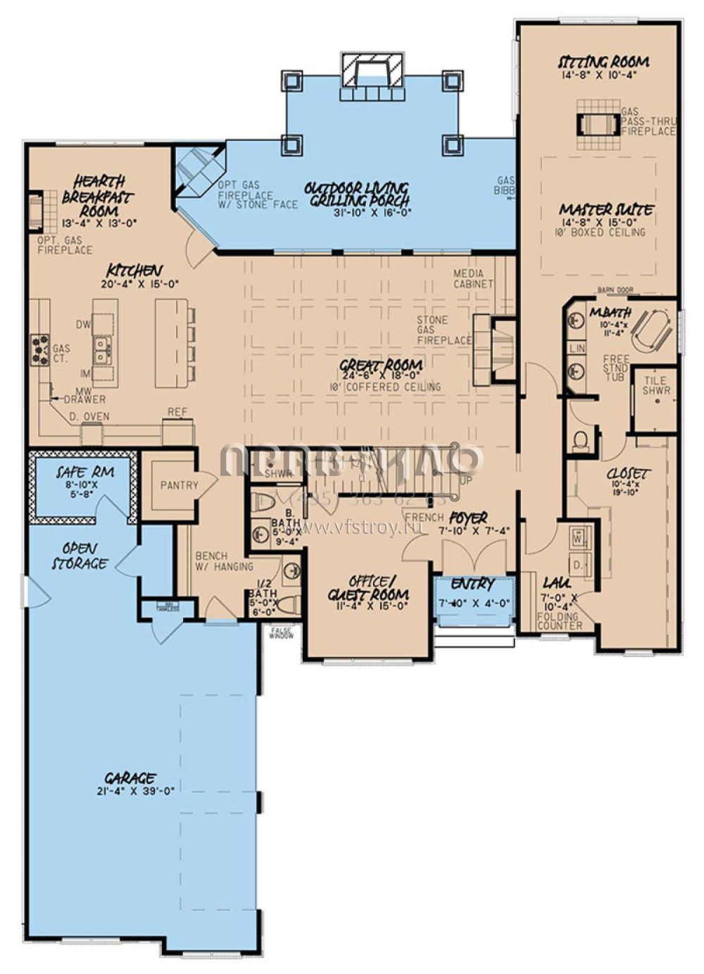 Проект двухэтажного дома с гаражом на две машины в стиле Ранчо S5-298 (8318-00046)